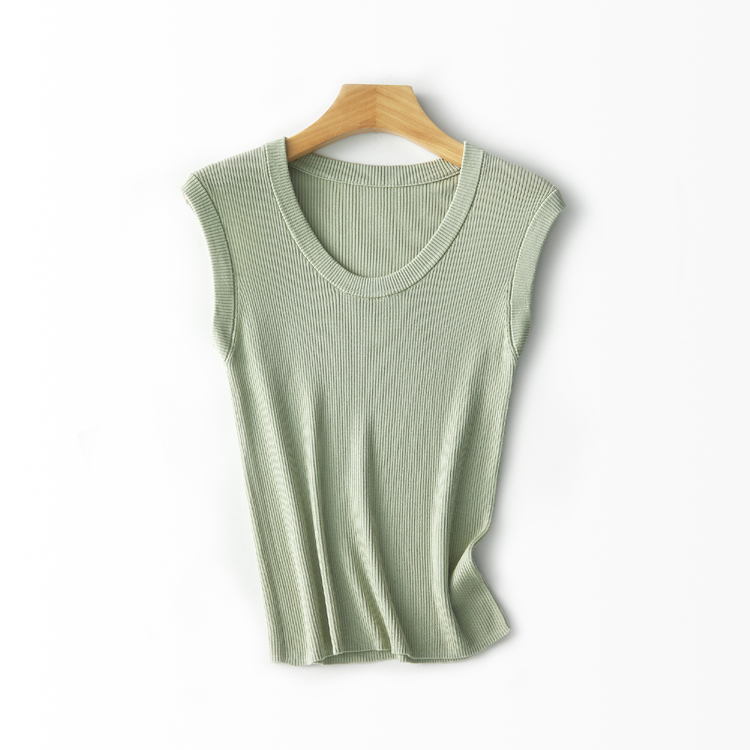 复古包肩袖 衣橱百搭王 U领气质显瘦莱赛尔弹力针织背心 清仓 特价