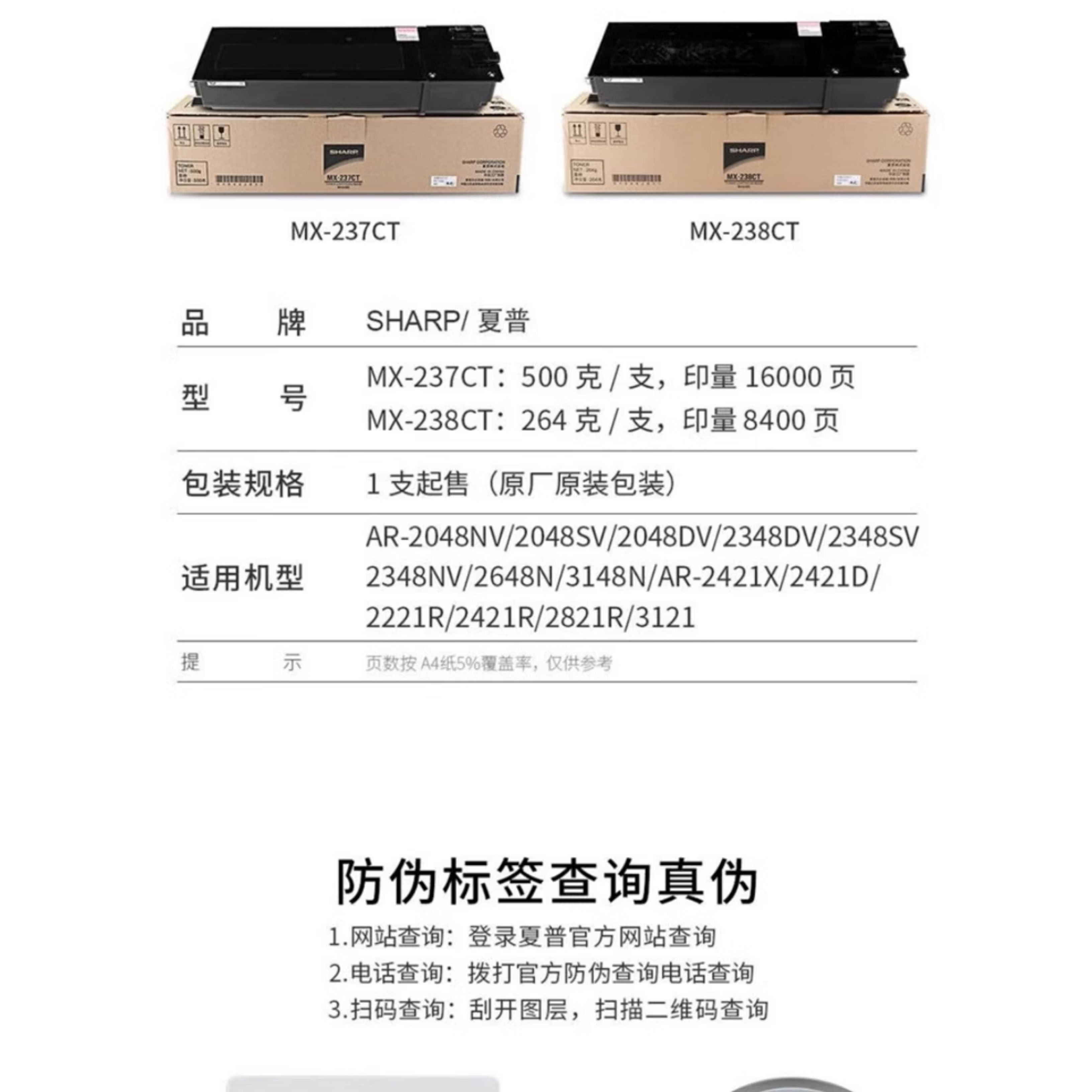 238CT墨粉盒2421X 237 2221R 2421D 3121SVN碳粉 原装 2821 夏普MX