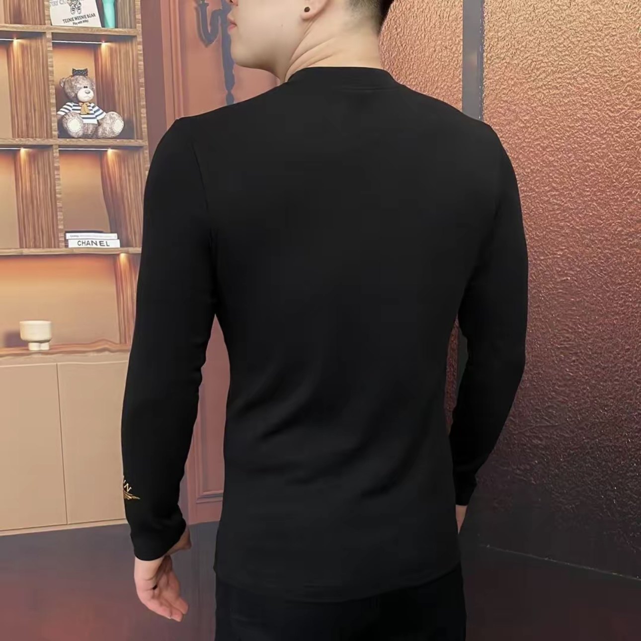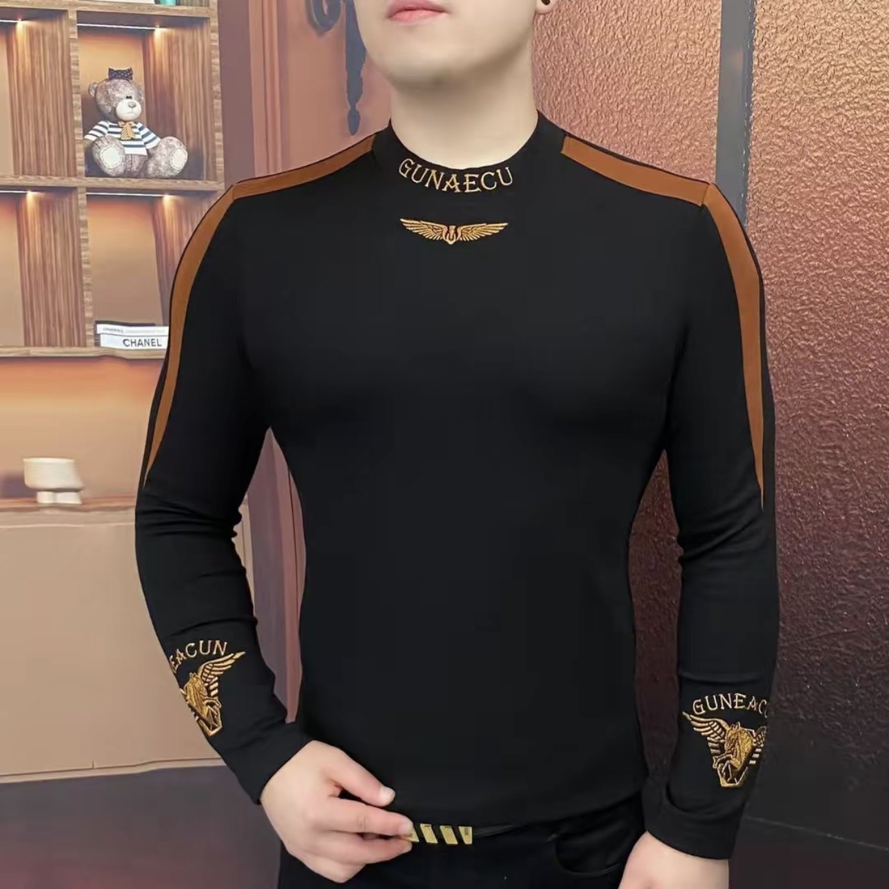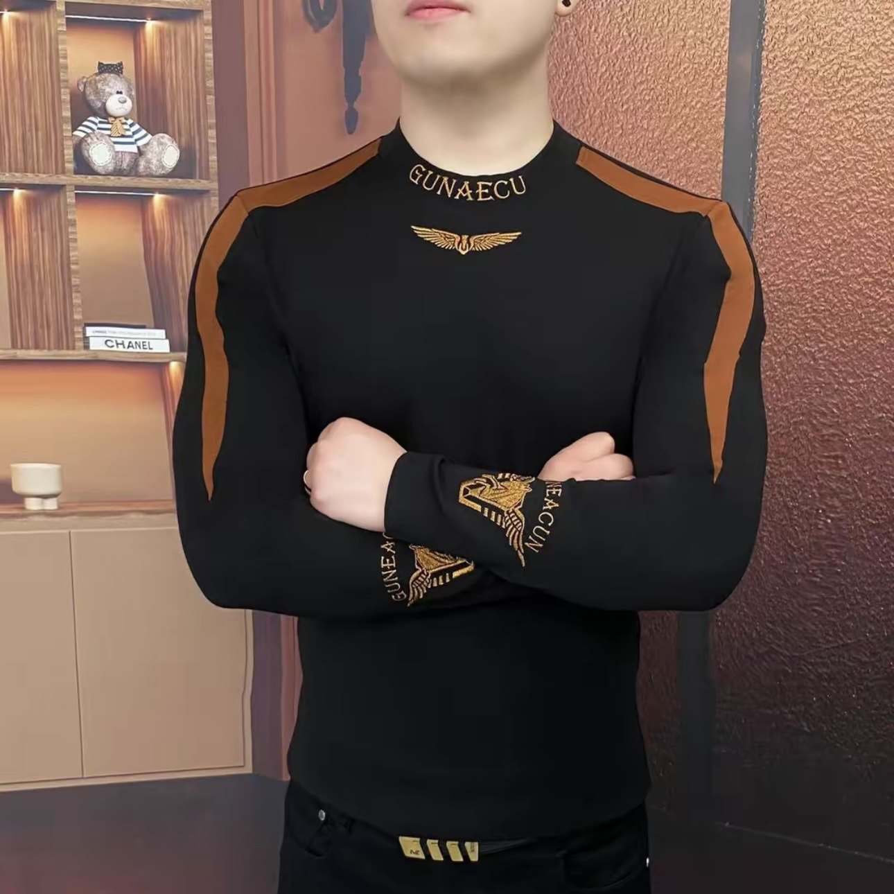 新款 百搭修身 男士 T恤时尚 弹力打底上衣 圆领德绒刺绣长袖 欧货秋季