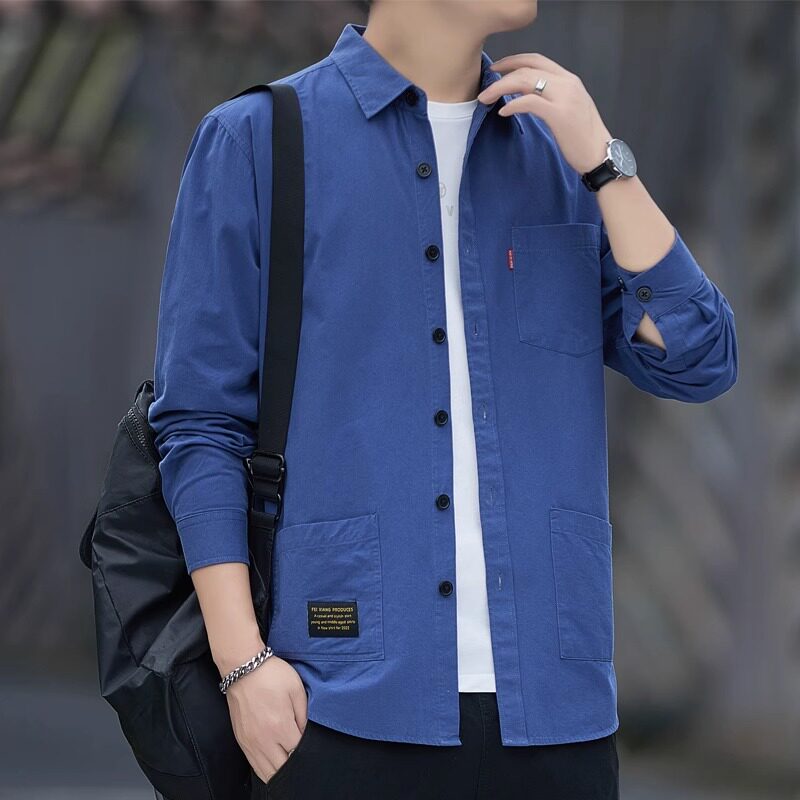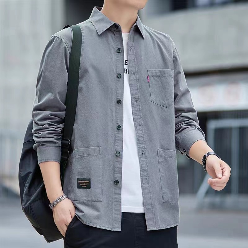 风多口袋全棉衬衣外套男士 纯棉衬衫 工装 春秋季 休闲宽松上衣 男长袖