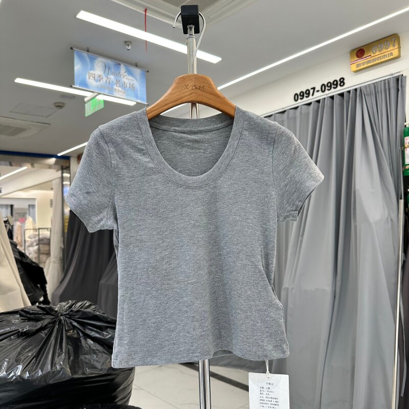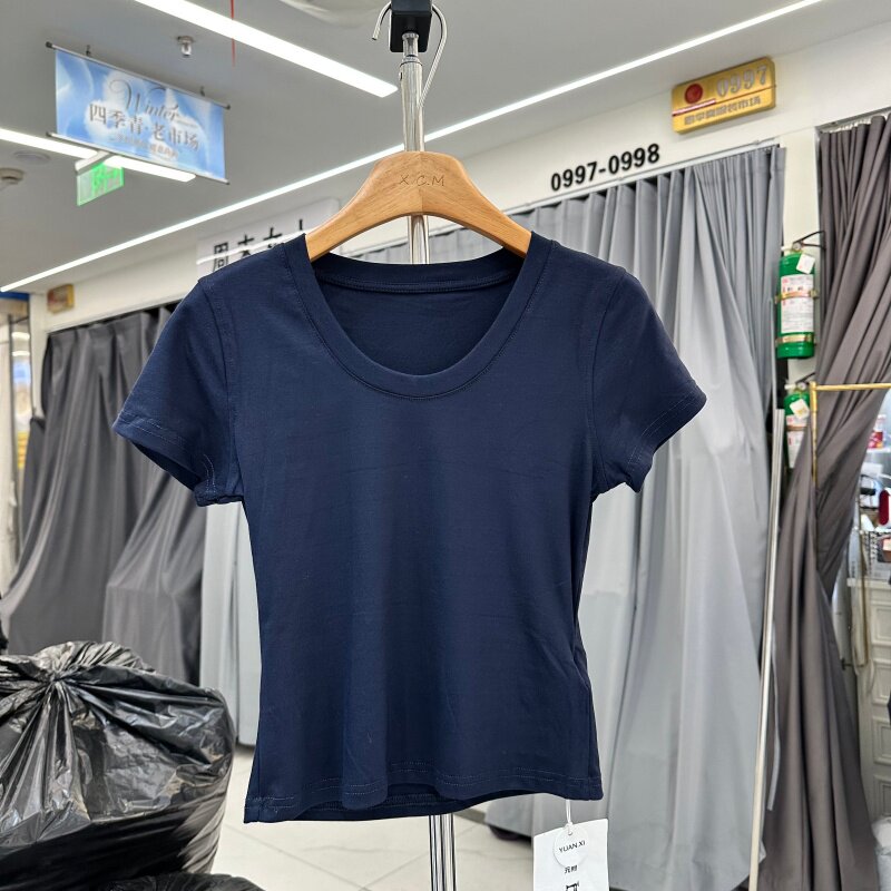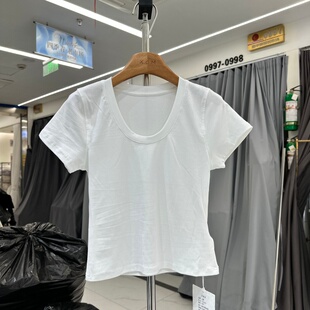想新款 春季 韩系U领显瘦百搭光版 短袖 女 YUANXI元 T恤衫 熙263022正版