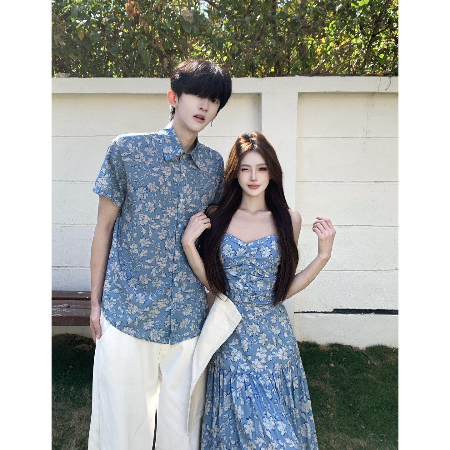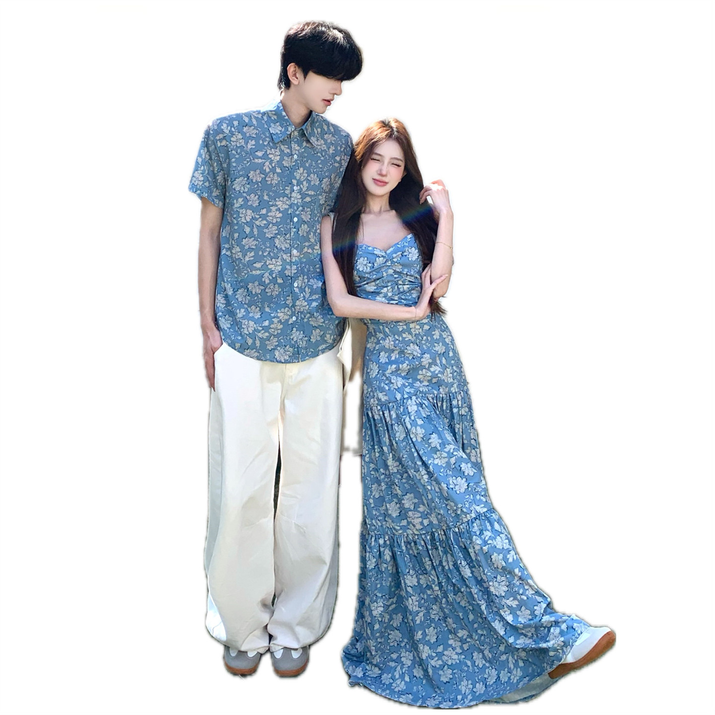 夏季 男女连衣裙法式 2026韩版 衬衫 一裙一衣潮 短袖 小众设计感情侣装
