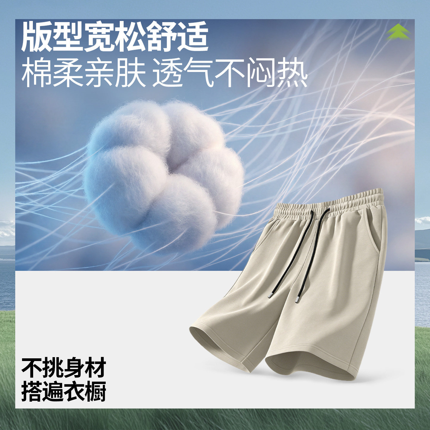 男士 子户外跑步休闲宽松五分裤 夏季 裤 薄款 班尼路藏青色纯棉短裤