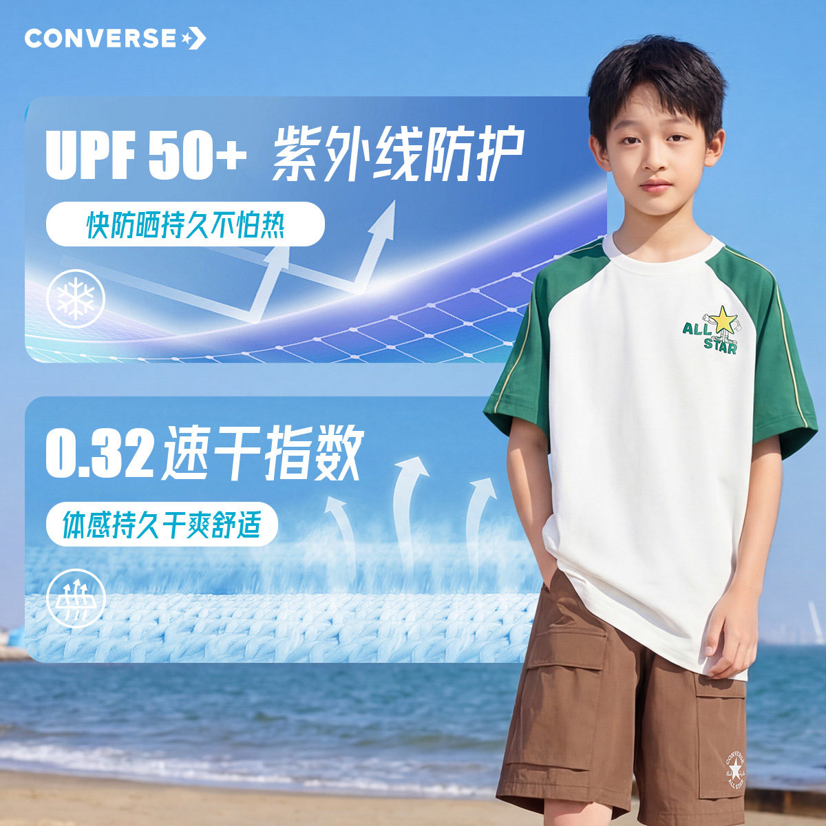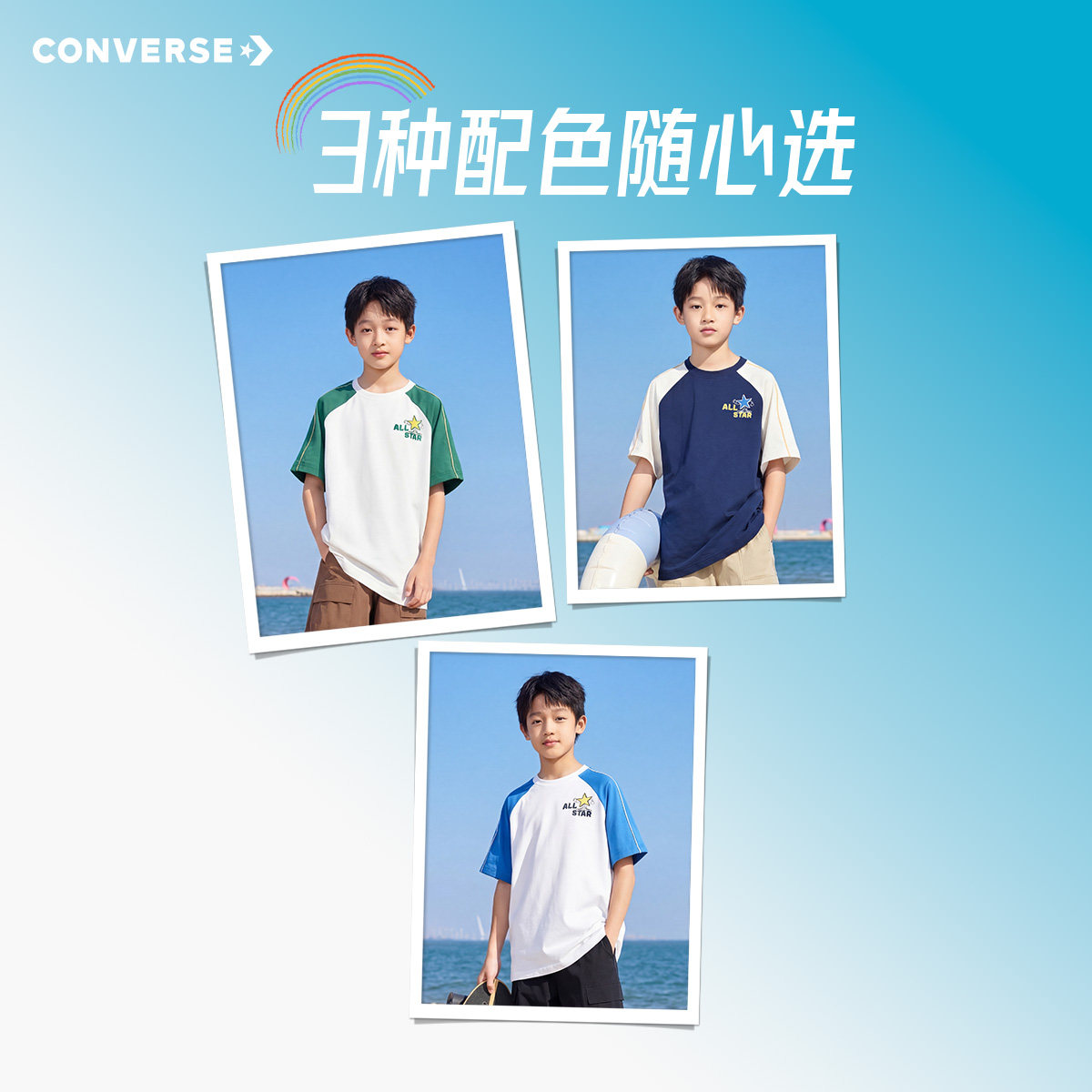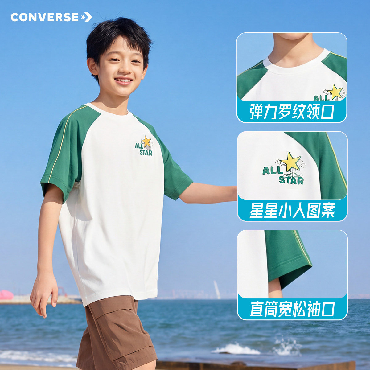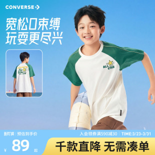 男童短袖 休闲撞色百搭上衣时尚 T恤2026夏季 插肩袖 潮 新款 匡威童装