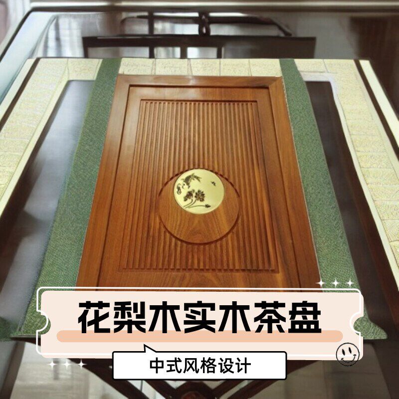 速发刺猬紫檀鸡翅木茶梨木实木花桌中间嵌入式 茶盘家用茶几漏水板