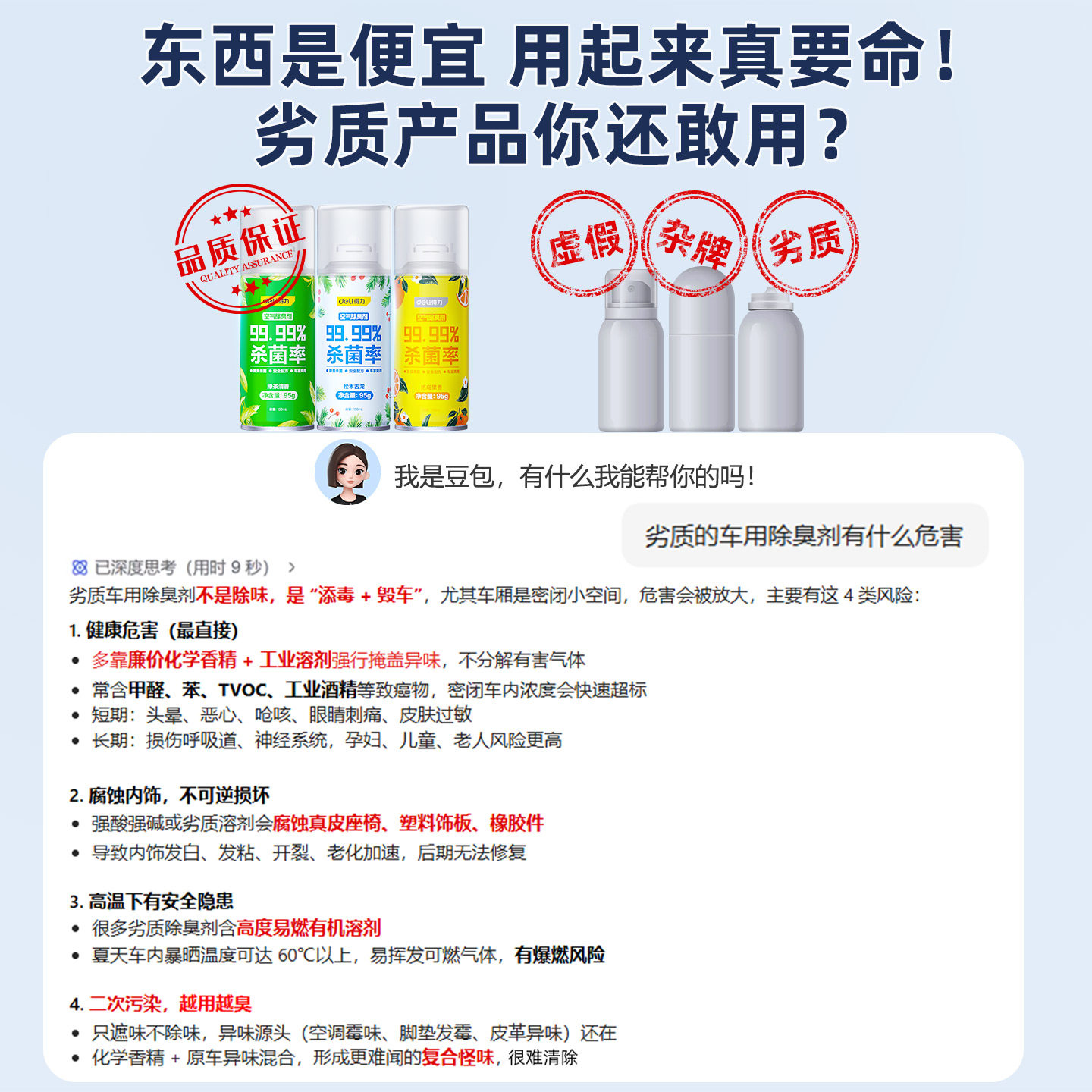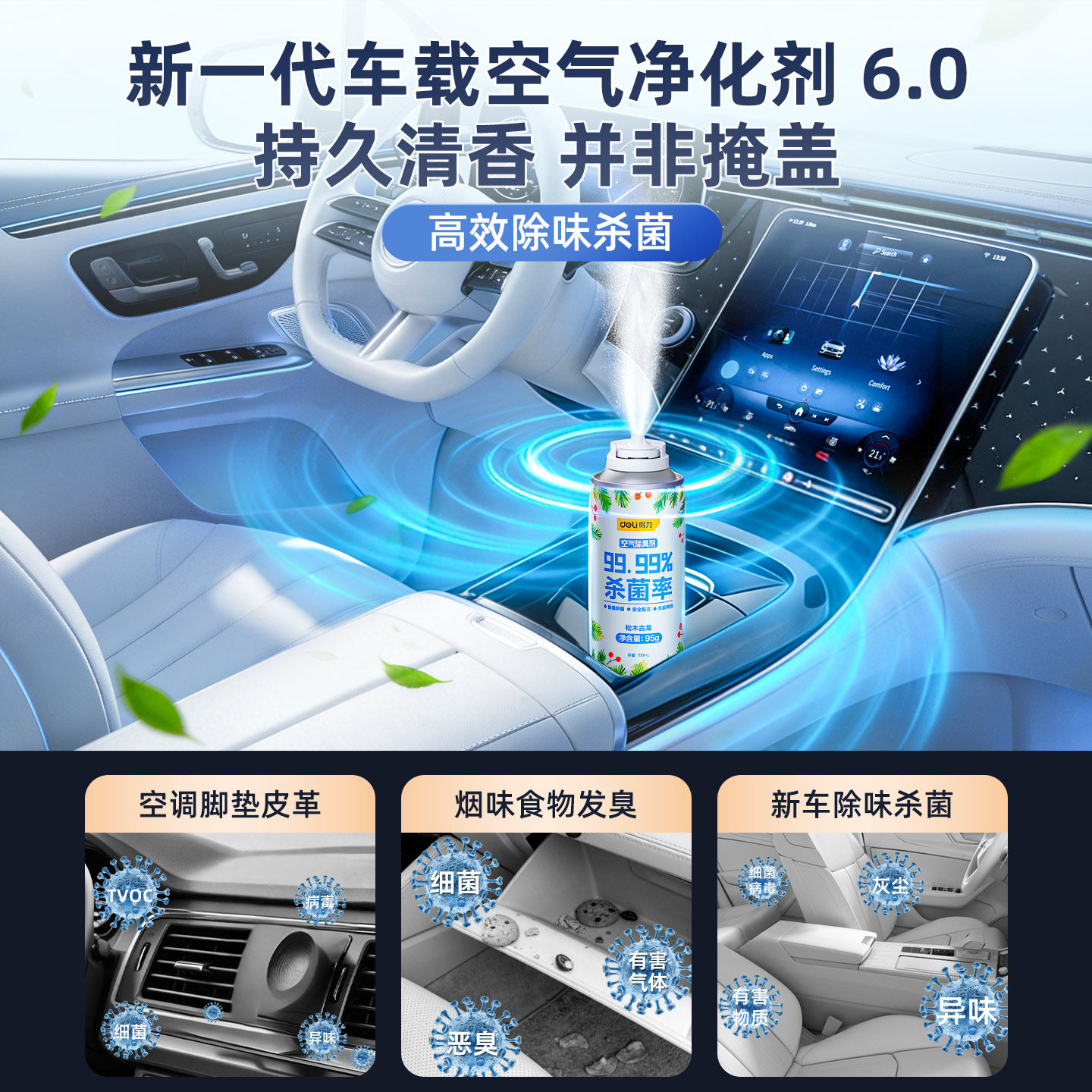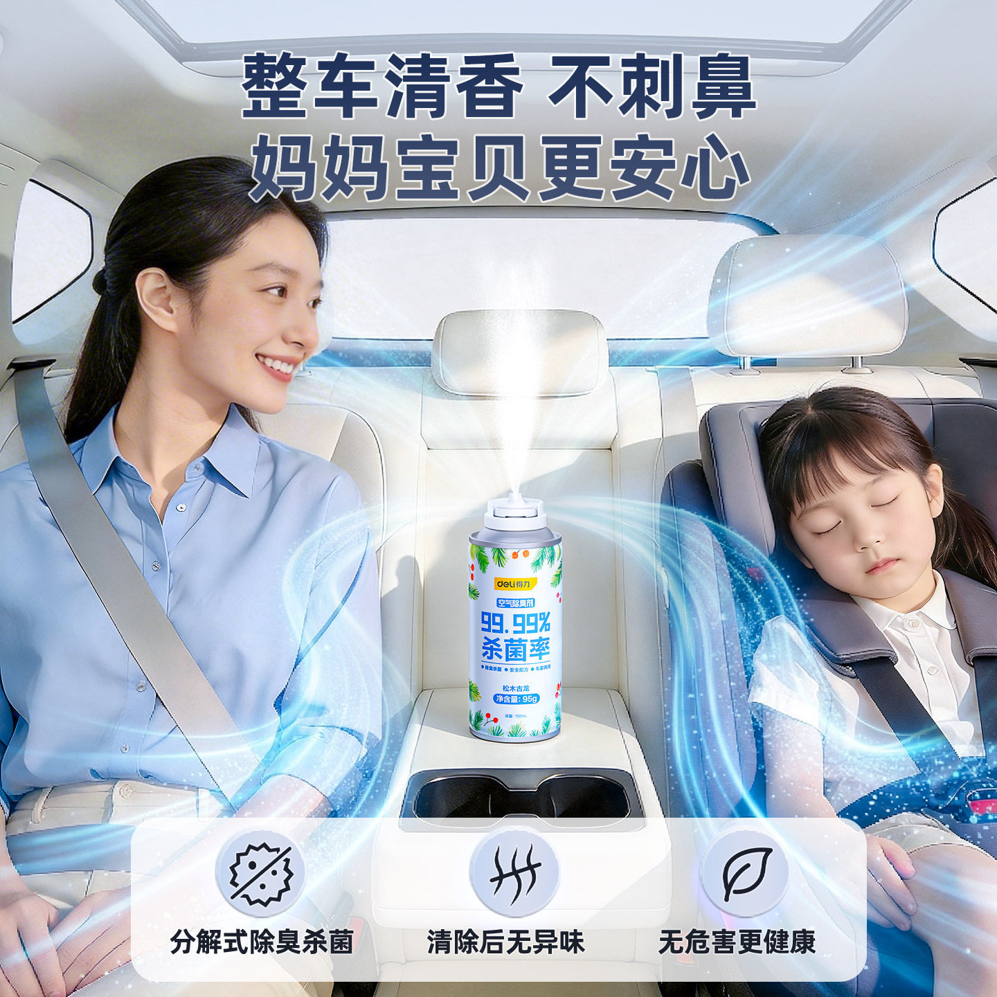 得力车内除异味汽车空调消毒杀菌除臭去异味空气净化清剂车用喷雾