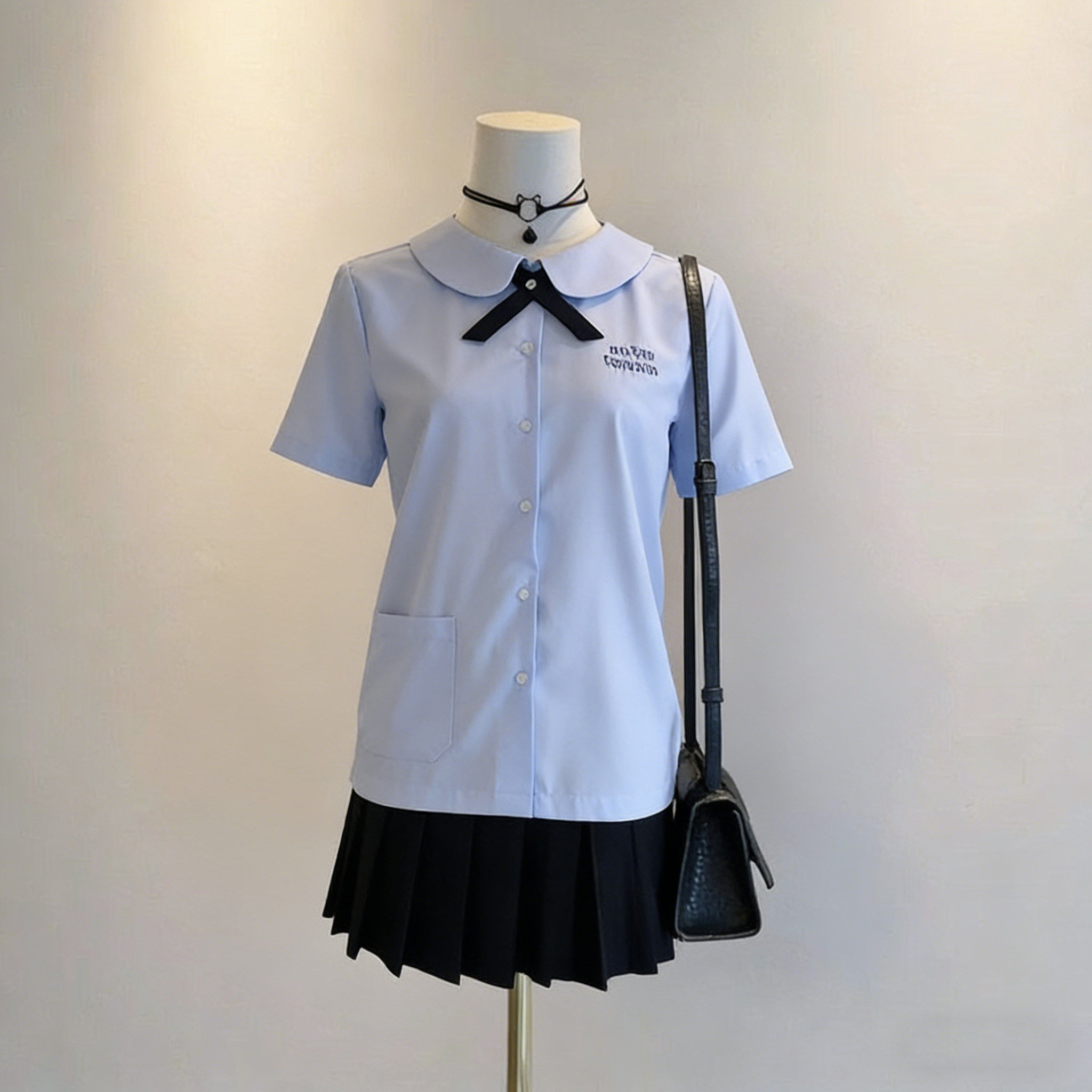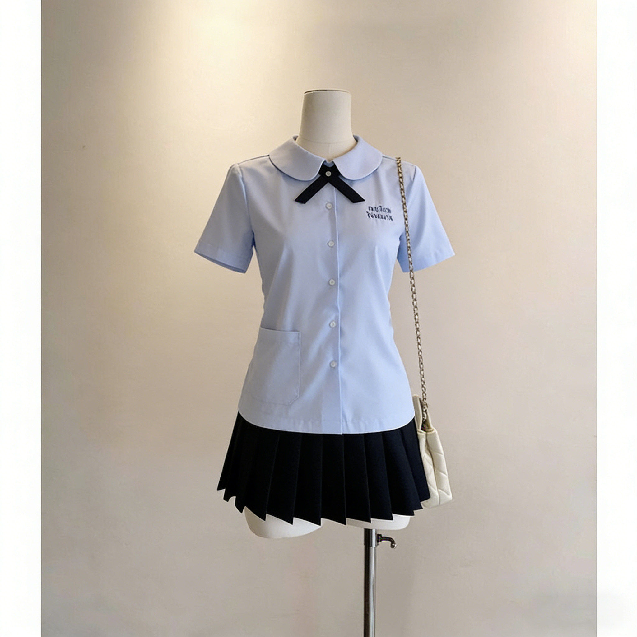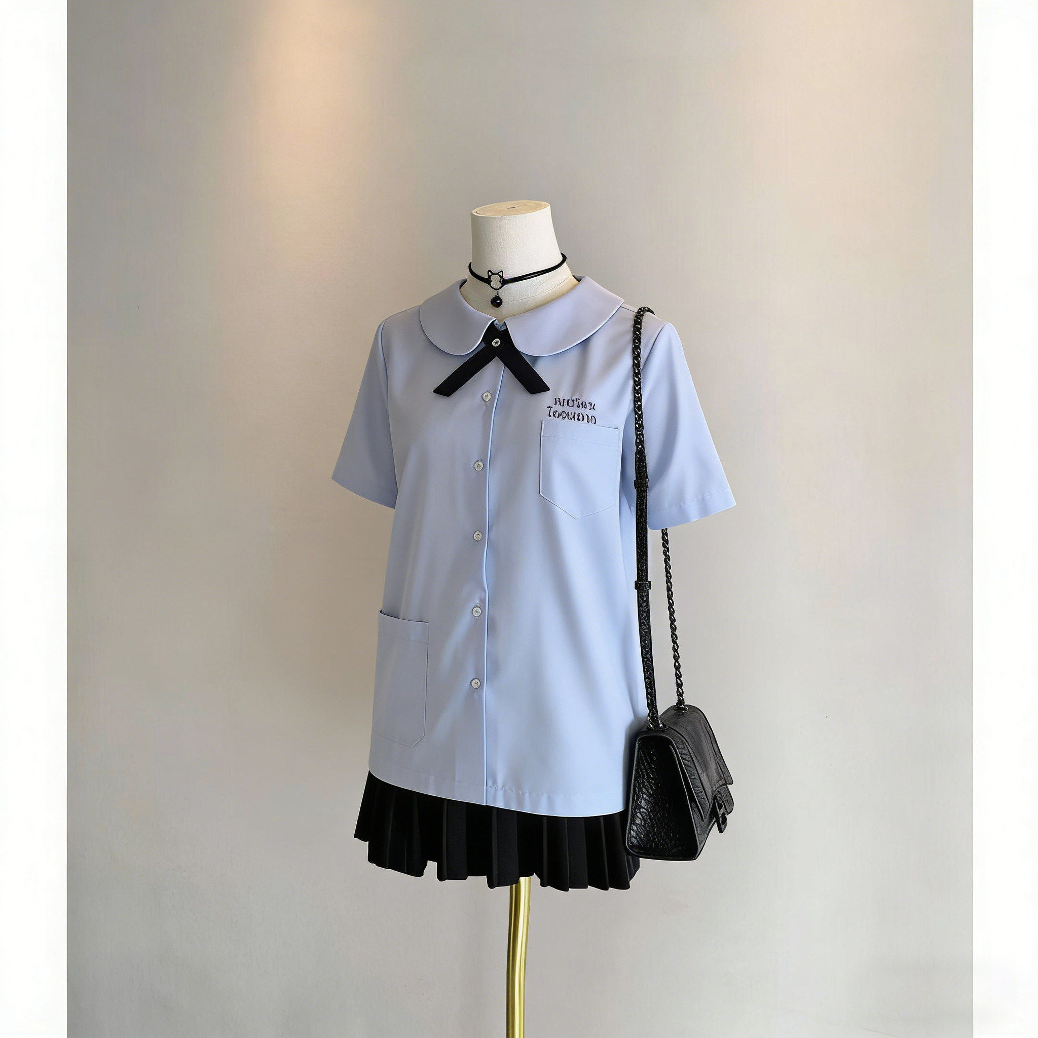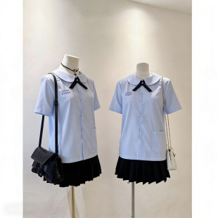 圆领校服上衣套装 jk制服蓝色短袖 学生学院风泰式 女校供感夏季 衬衫