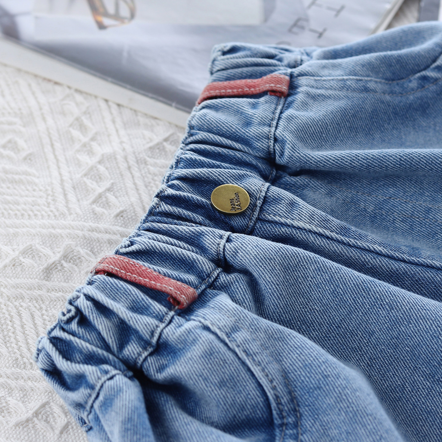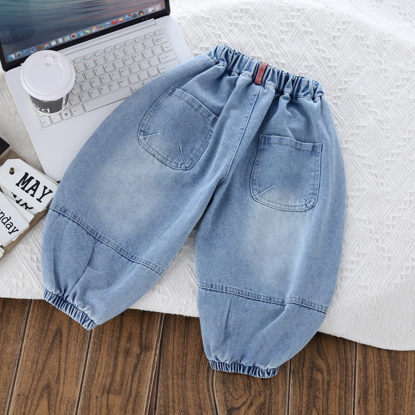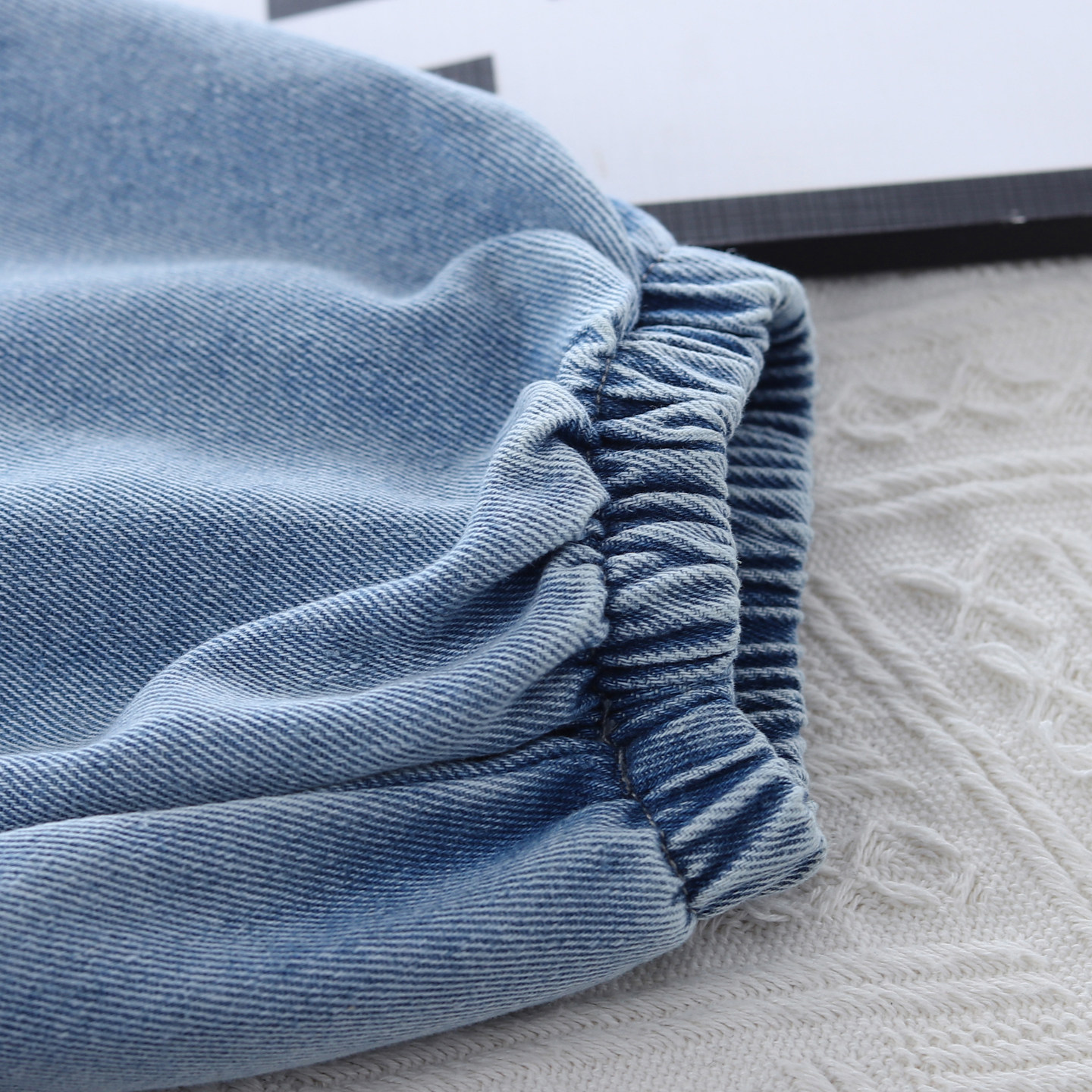 洋气百搭裤 男女宝宝春秋束脚哈伦裤 子水洗磨白软潮 儿童牛仔裤 韩版