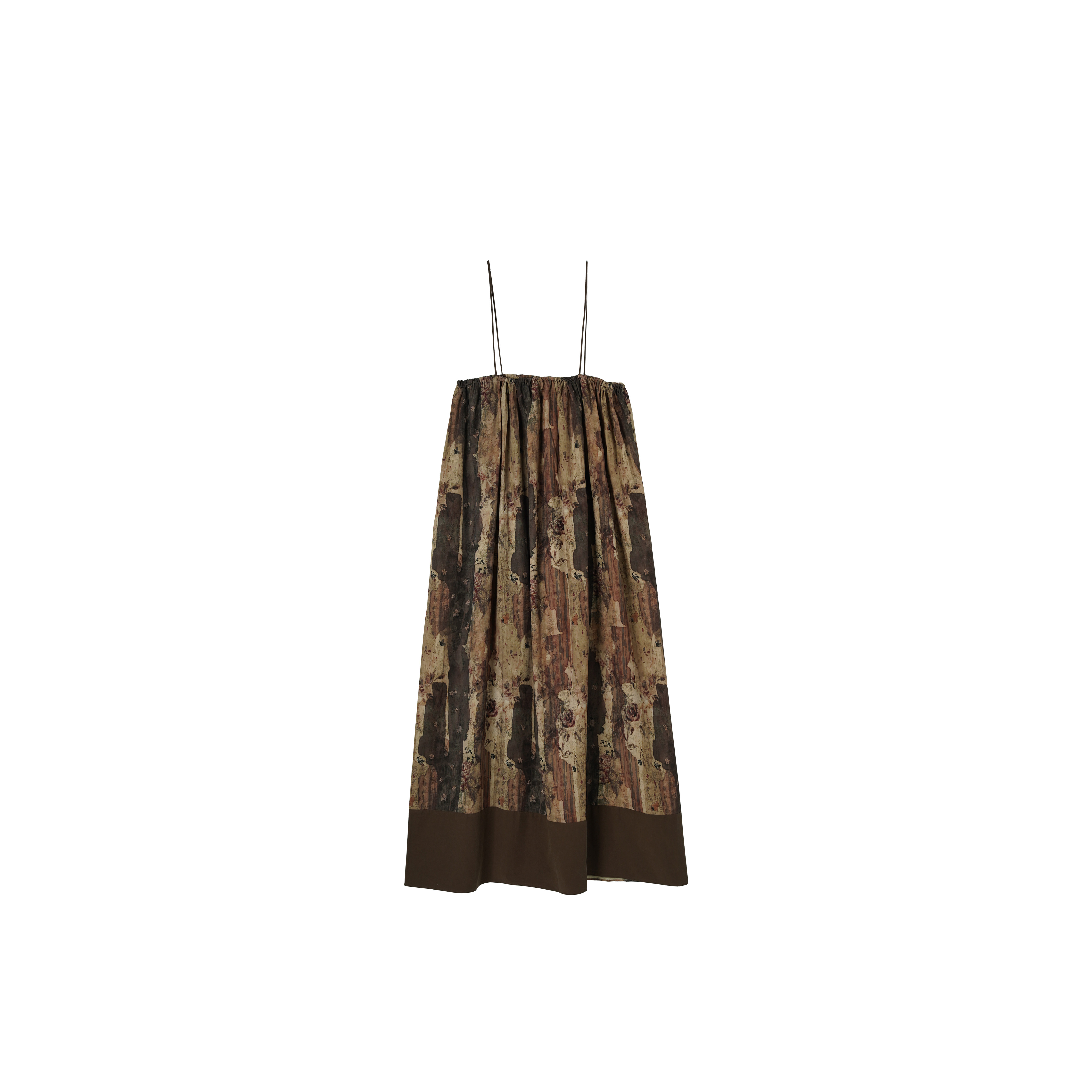 HER 印染休闲风无袖 塞纳画笔 显瘦吊带薄款 花色长裙L1028 夏季