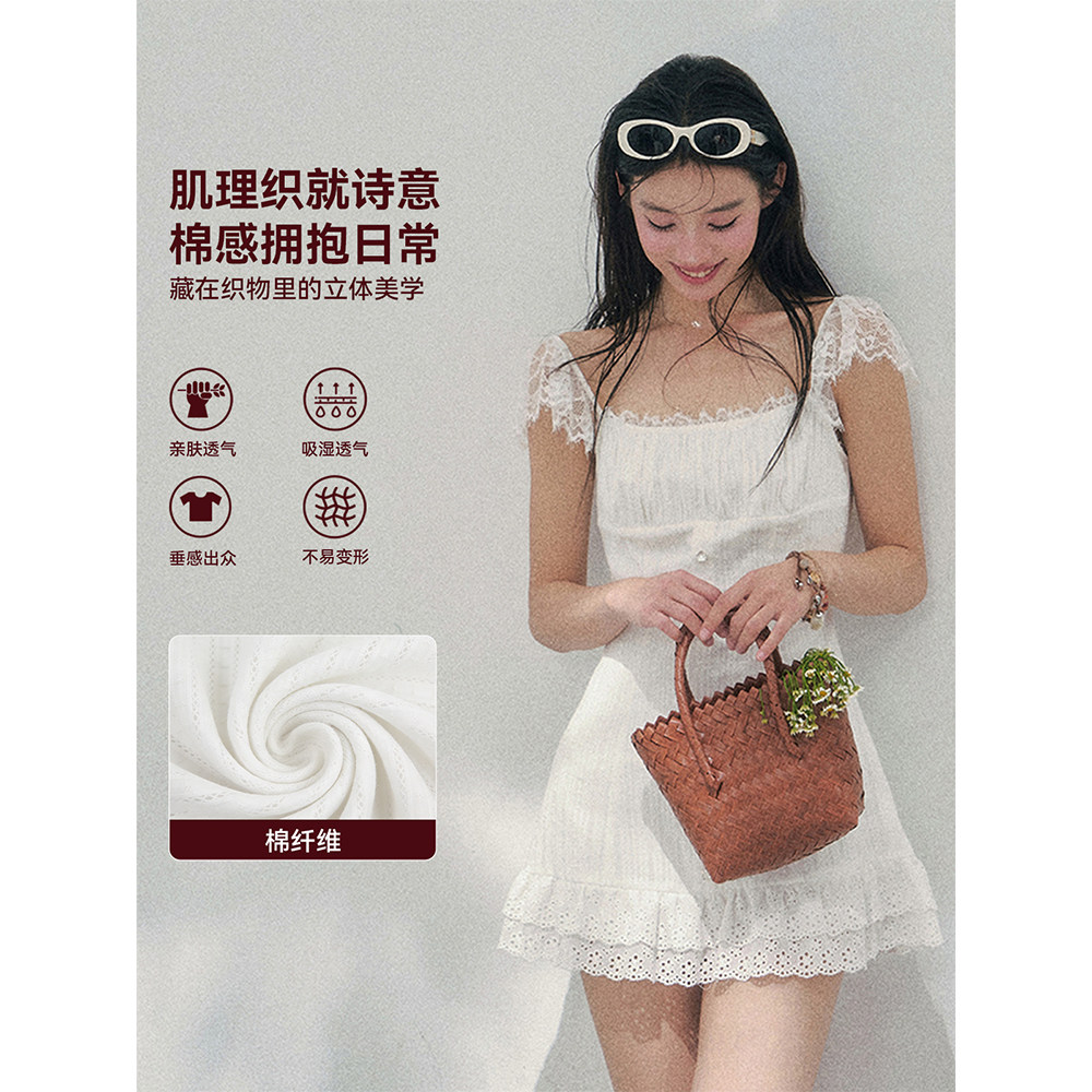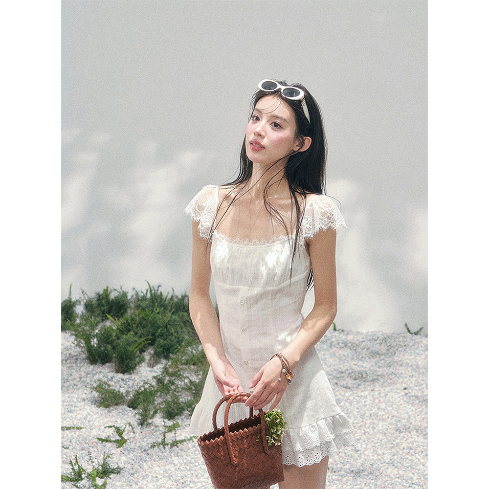温柔风蕾丝连衣裙女春方领蓬蓬短裙 %法式 AOMALM少也眼 夏潮漫裙