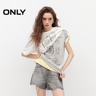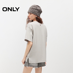 ONLY2026春季 上衣凉感质感刺绣印花设计宽松遮肉圆领T恤女 新款