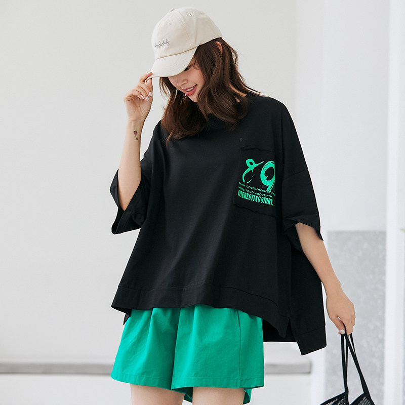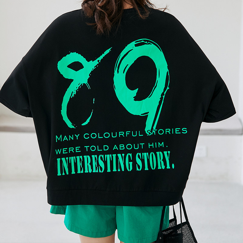 女装 蝙蝠衫 胖mm上衣洋气2026夏季 字母印花七分袖 T恤 新款 薇语大码