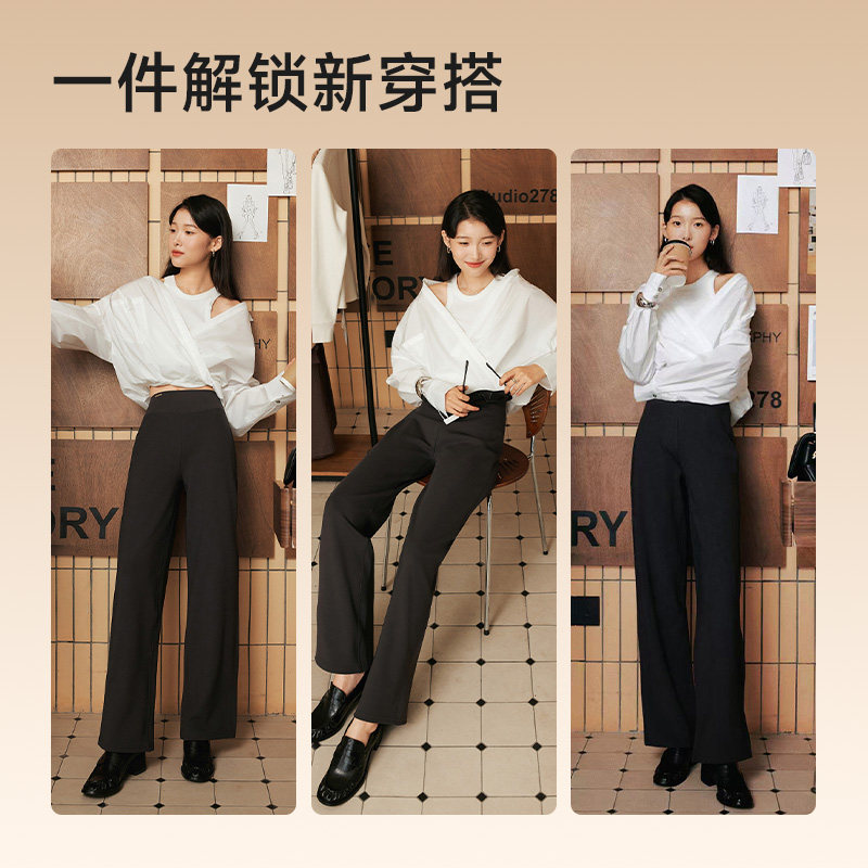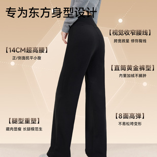 加绒保暖黑色垂感保暖阔腿裤 高腰长裤 子女冬季 MissWiss收腹直筒裤