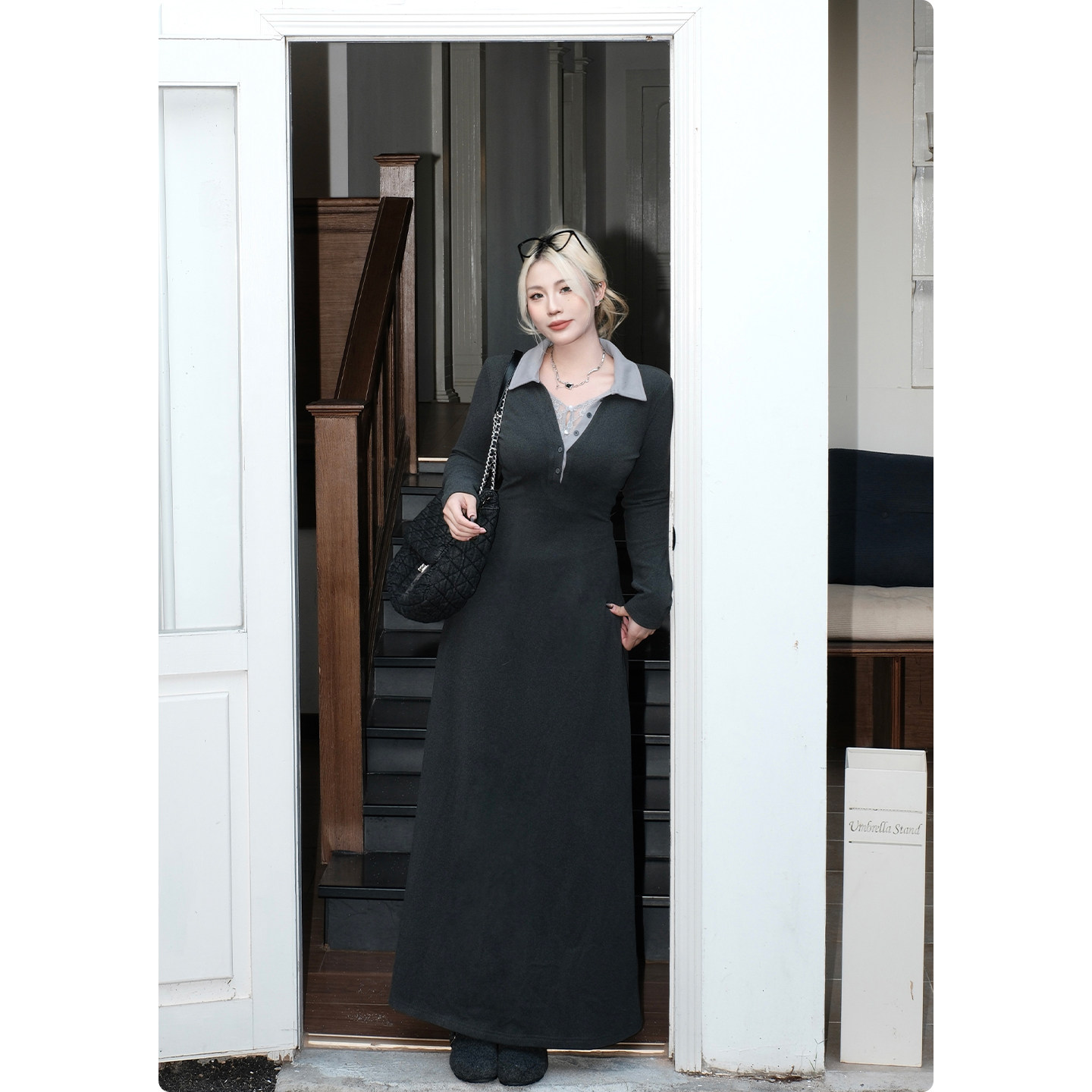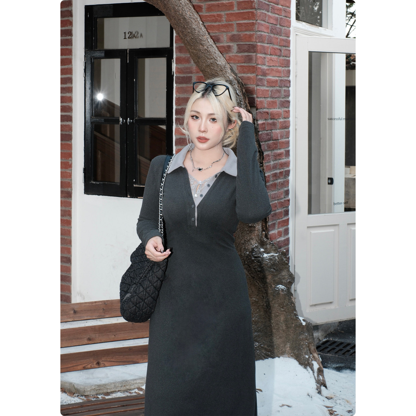 领假两件大码 糯米子 衬衫 磨毛绒感针织连衣裙春秋季 裙子 朦胧交叠