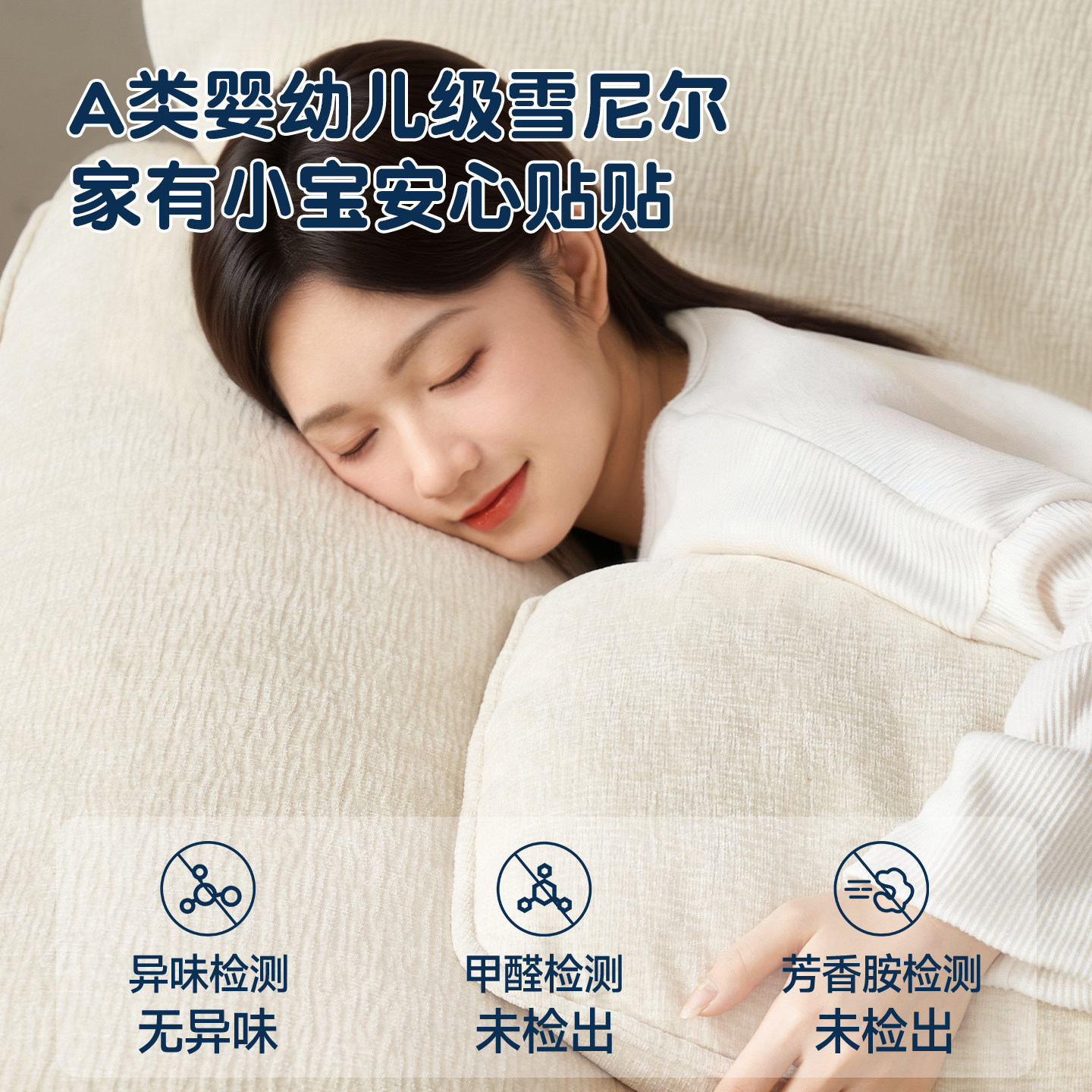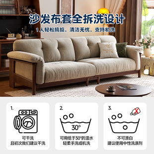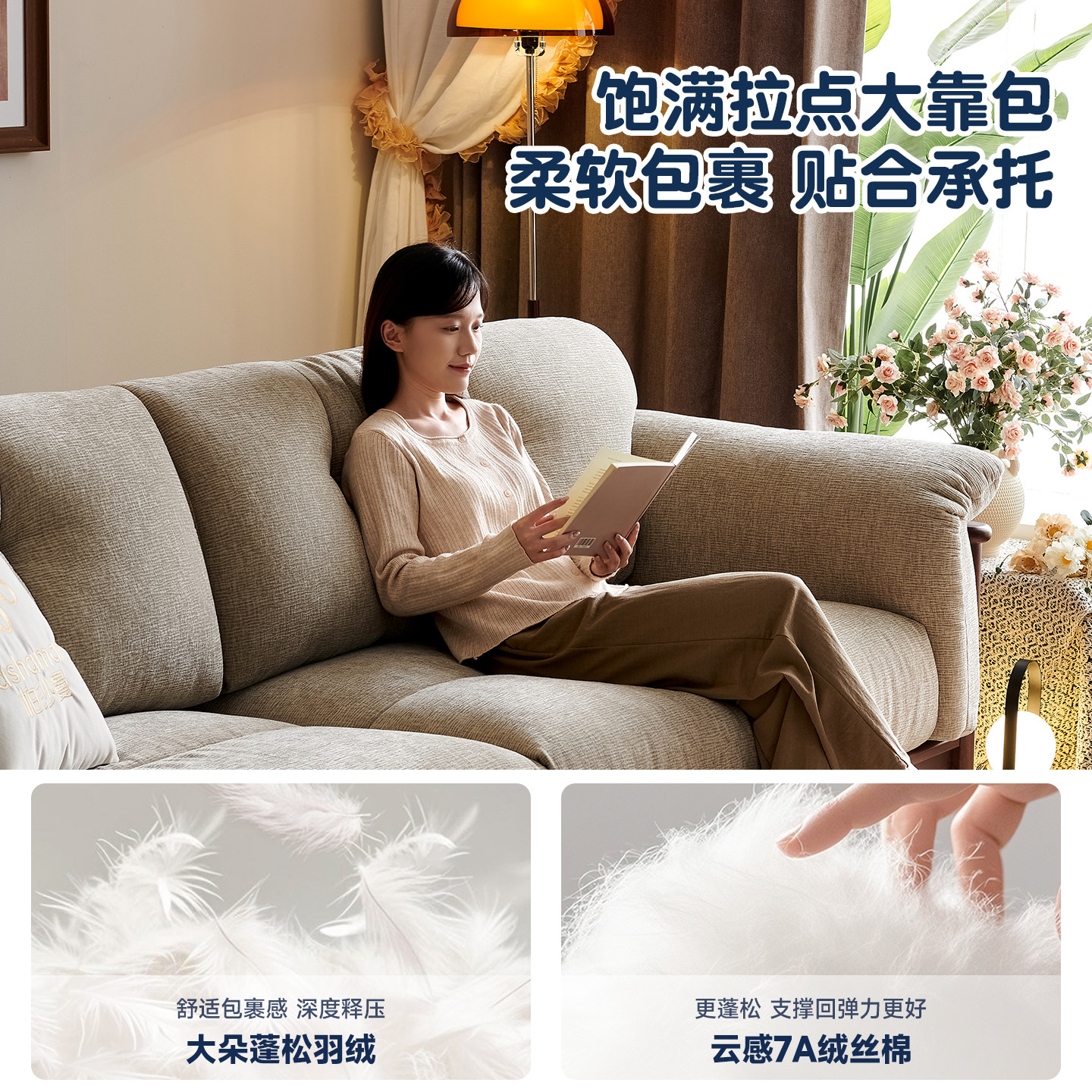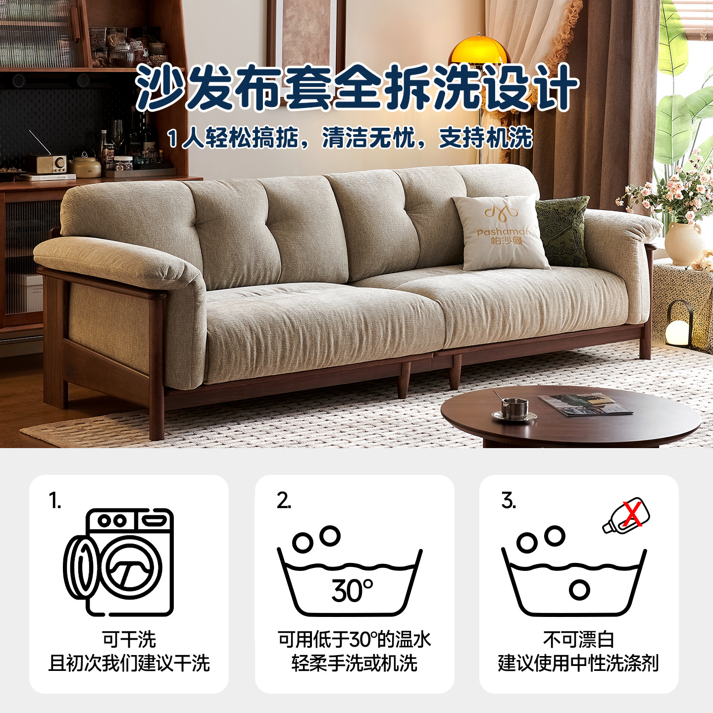 帕沙曼可拆洗实木沙发布艺客厅小户型中古风云朵沙发雪尼尔宽坐深