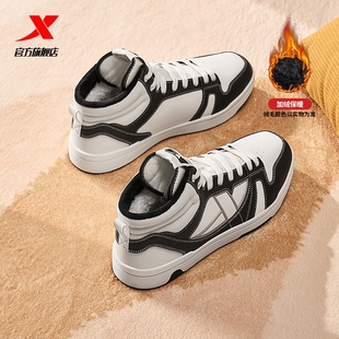 冬季 板鞋 保暖加绒运动休闲鞋 皮面户外鞋 特步革面高帮棉鞋 女鞋 男鞋