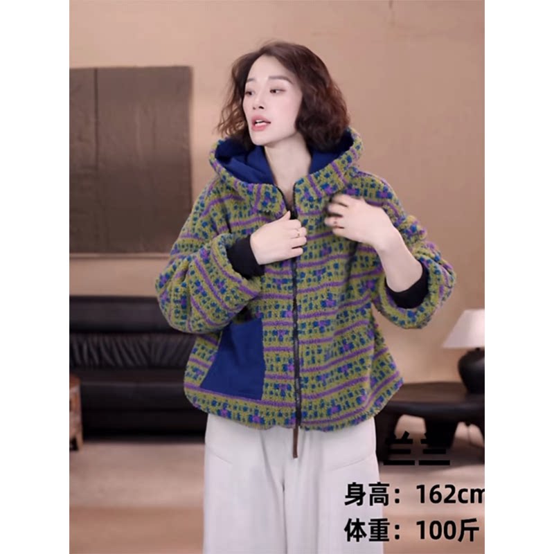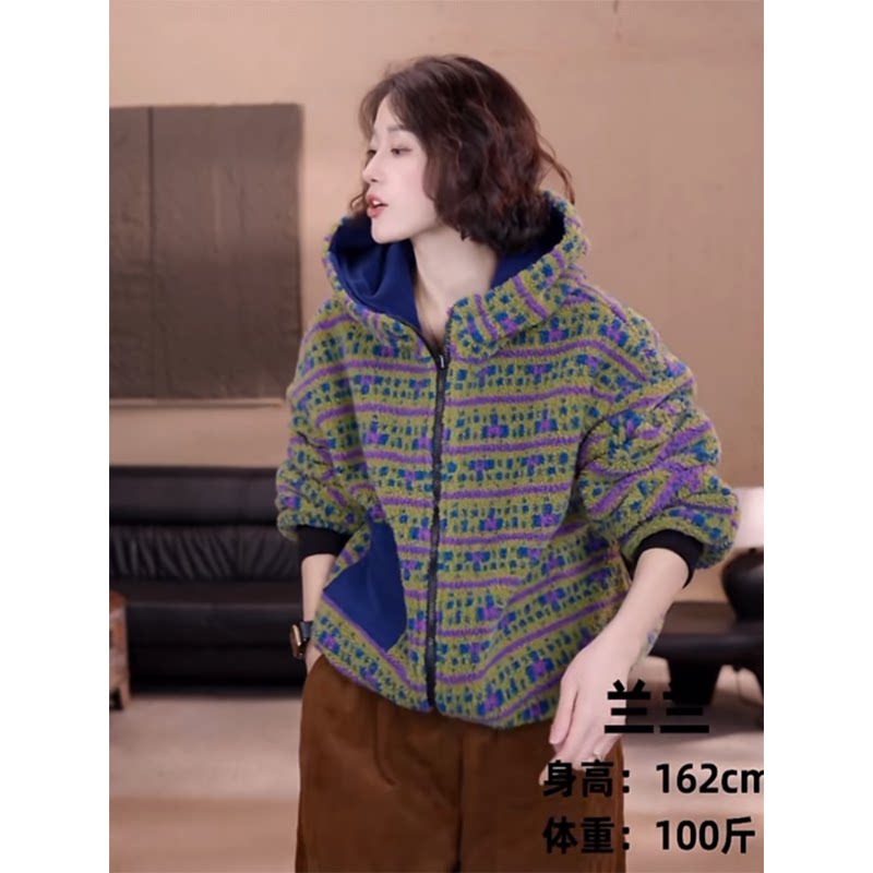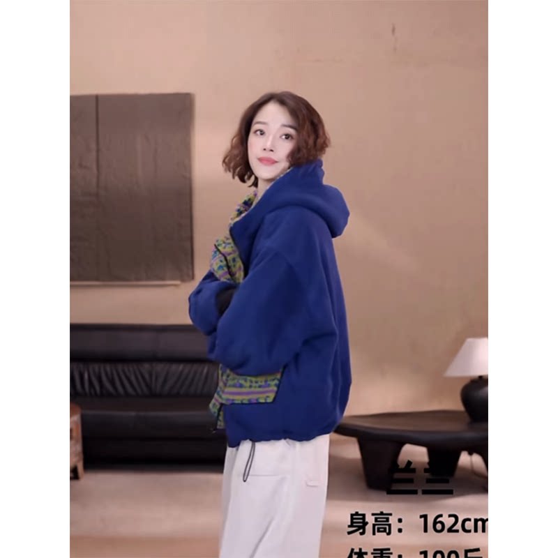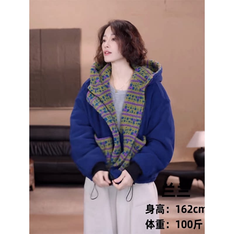 2025年冬季 欧货双面穿颗粒绒连帽棉服女加厚保暖口袋拉链外套 新款
