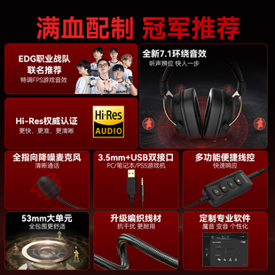 漫步者G5PLUS游戏耳机有线头戴式 电脑三角洲电竞专用 USB接口台式