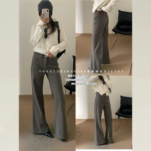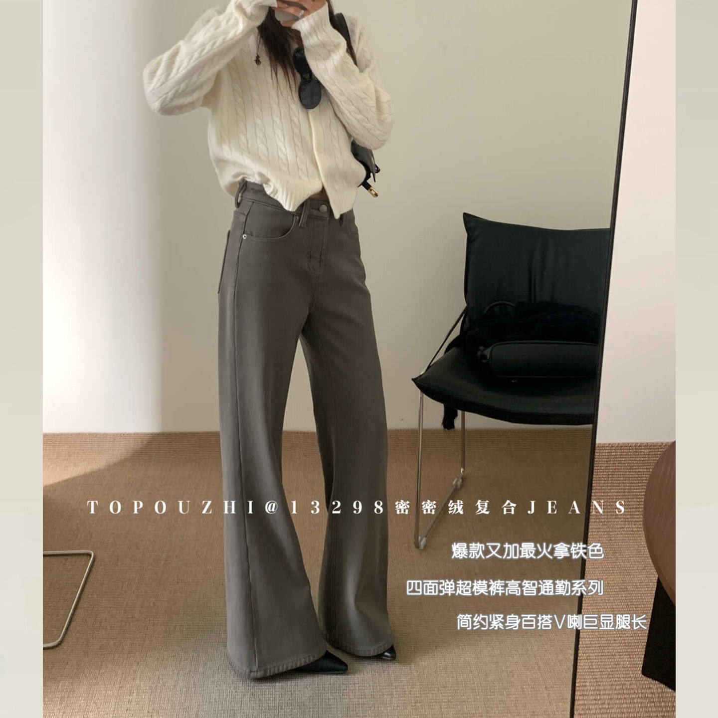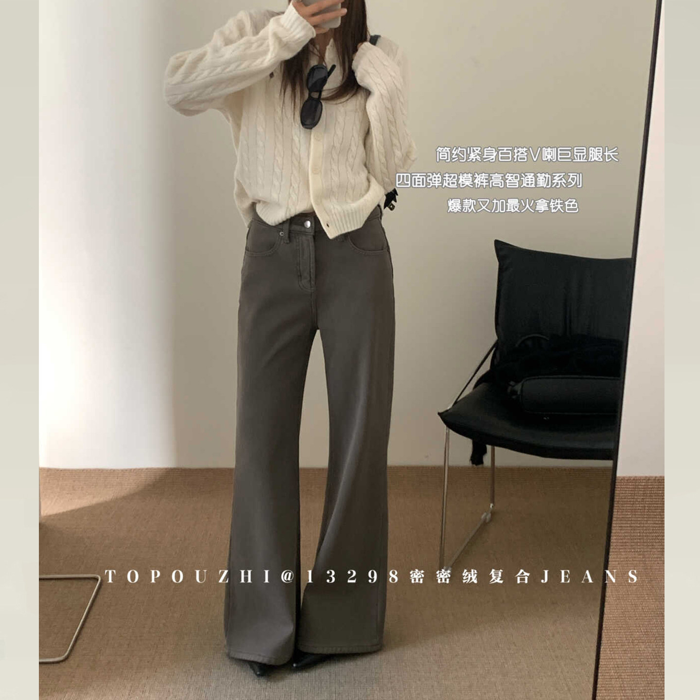 高腰显瘦不贴腿微喇裤 TOP欧制版 女2025新款 加绒牛仔裤 型超好看