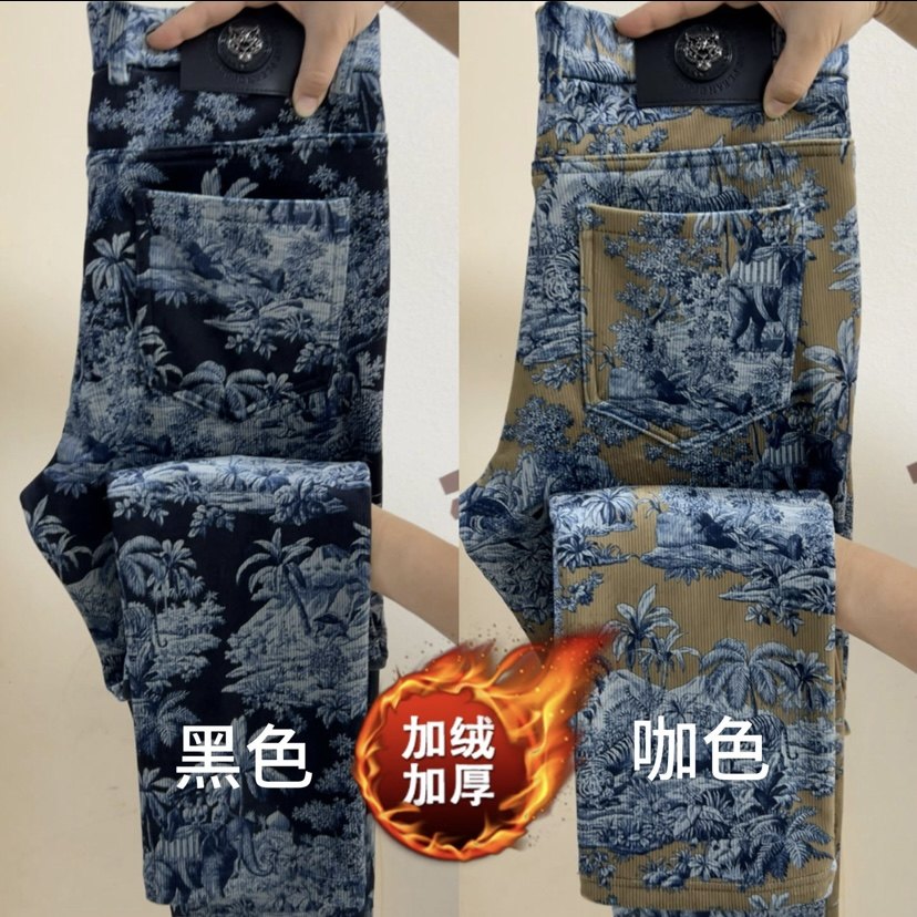 商务休闲加绒长裤 秋冬上新男士 直角裤 高端轻奢钻石绒厚款 帅潮 花裤