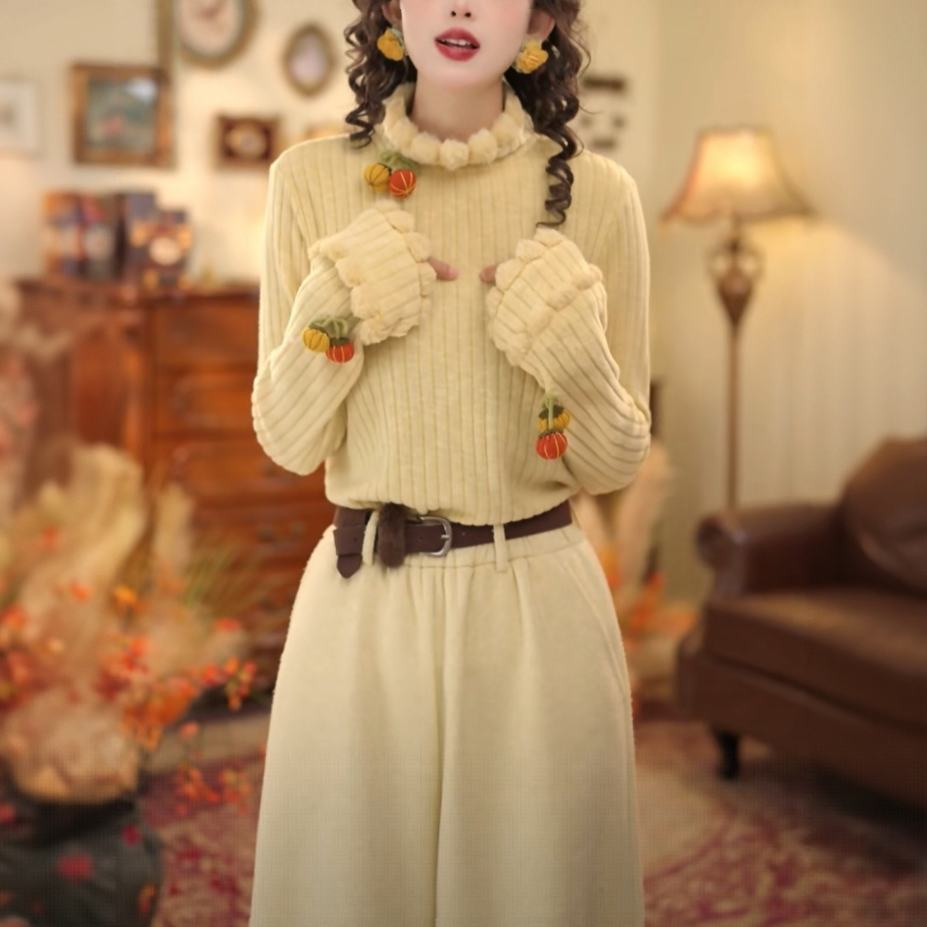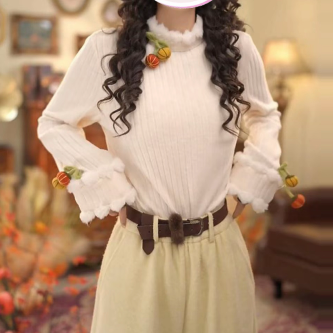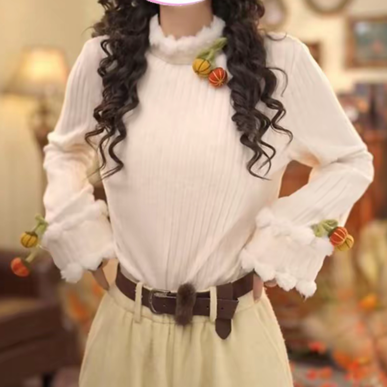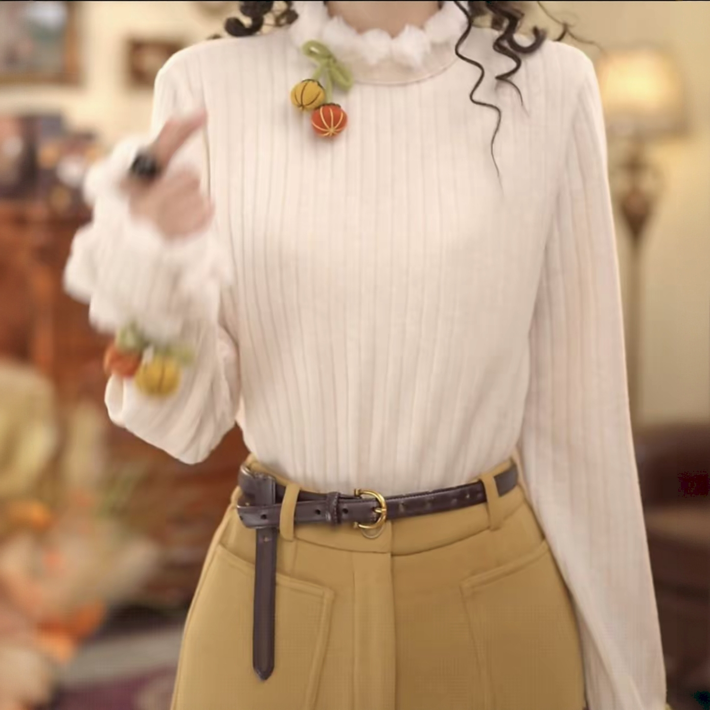 百搭气质上衣女 木耳领衬衫 仙草宝相提花缎真丝桑蚕丝白色法式 长袖