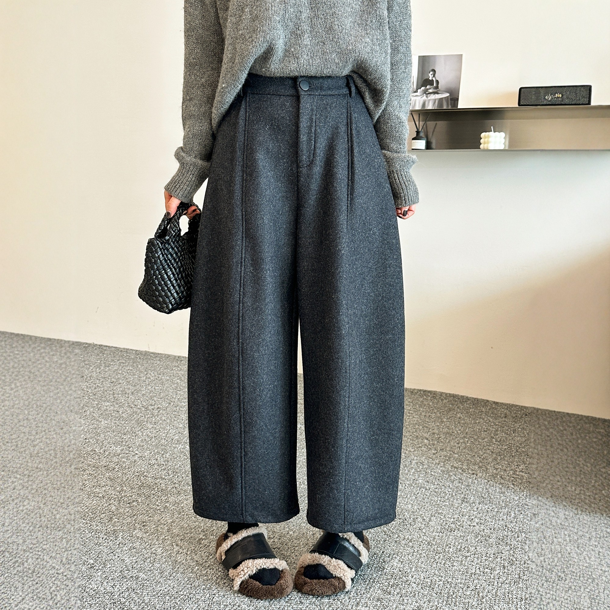 阔腿裤 休闲裤 女欧洲站2025冬装 欧货女装 潮 新款 羊毛呢加厚加绒西装