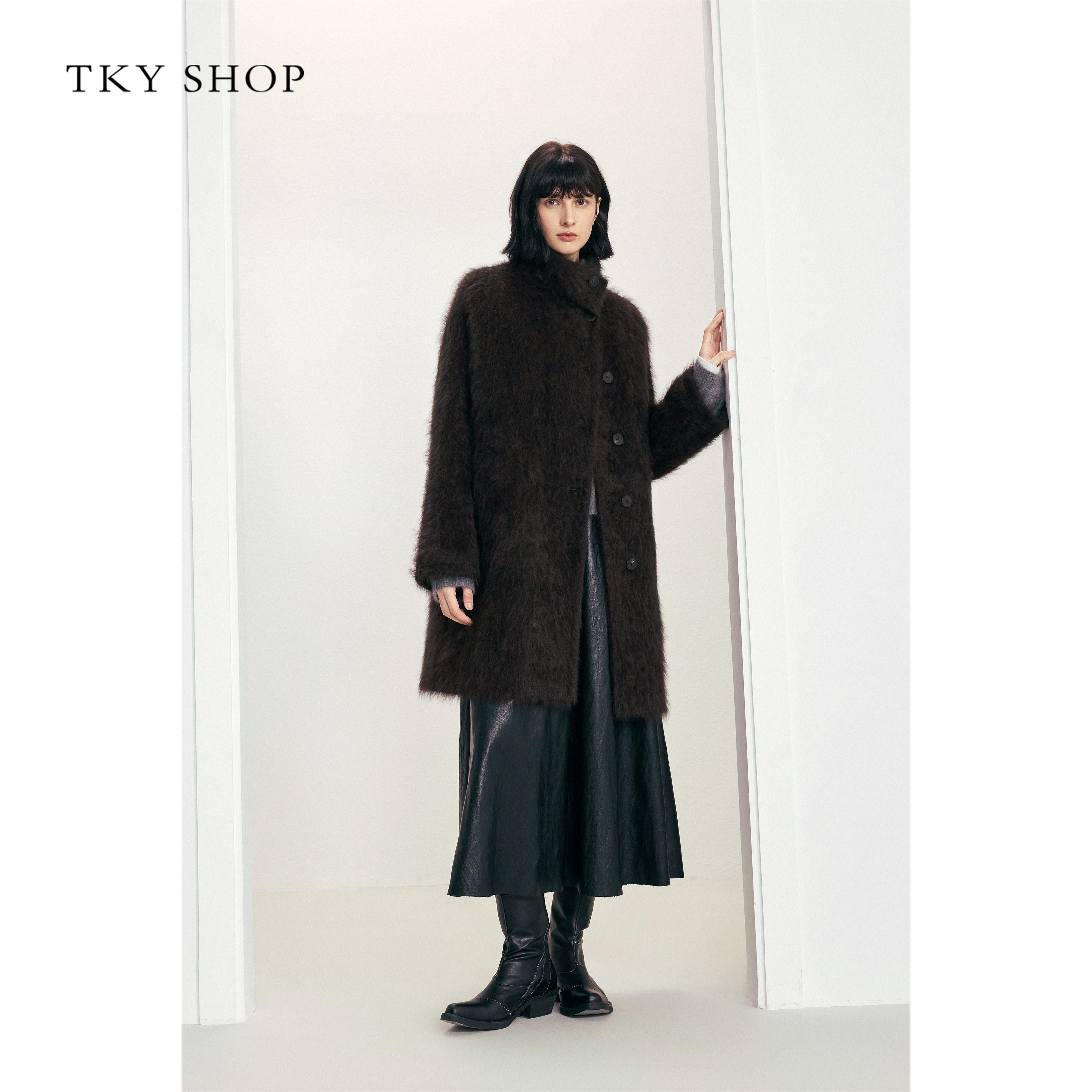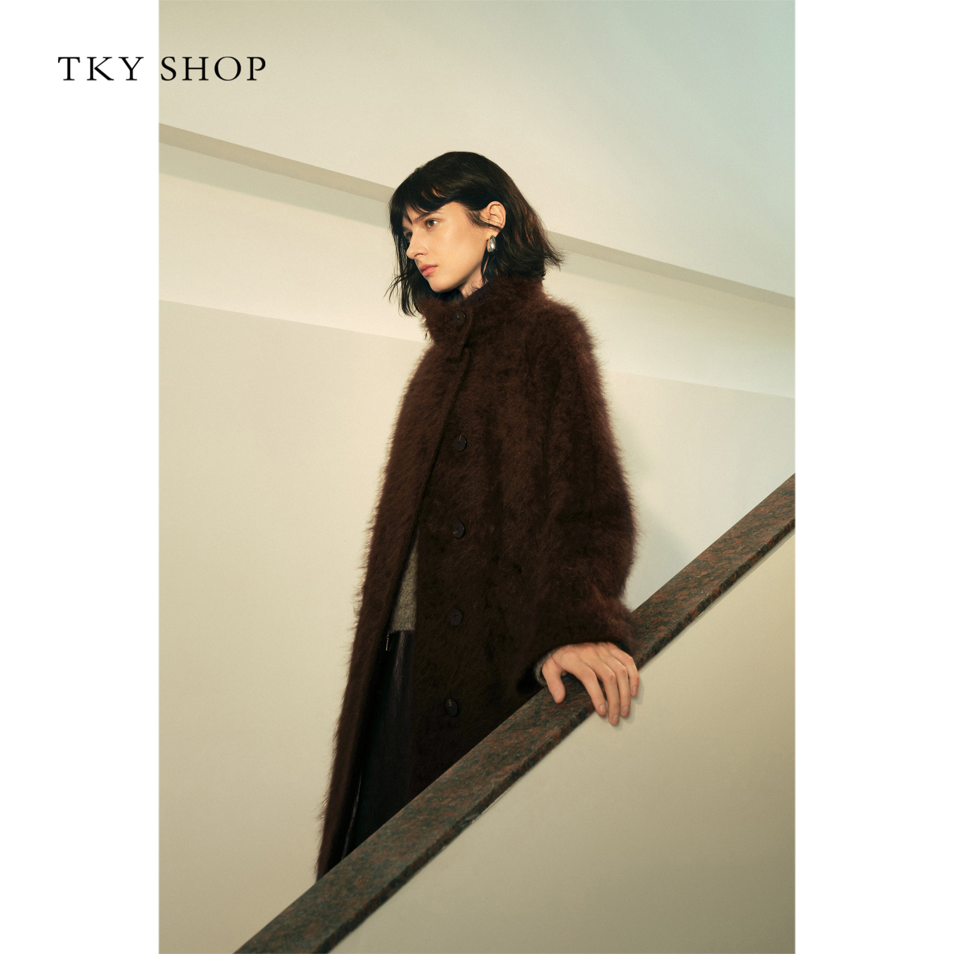 美拉德棕色秋冬新款 韩系宽松高端羊毛呢外套 双面羊绒大衣女中长款