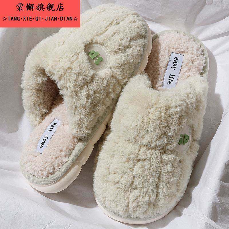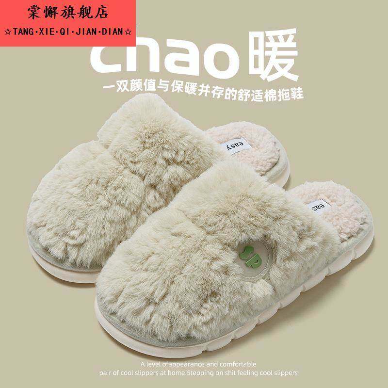 居家室内毛绒保暖厚底情侣毛拖鞋 2025新款 男秋冬 女冬季 毛毛棉拖鞋