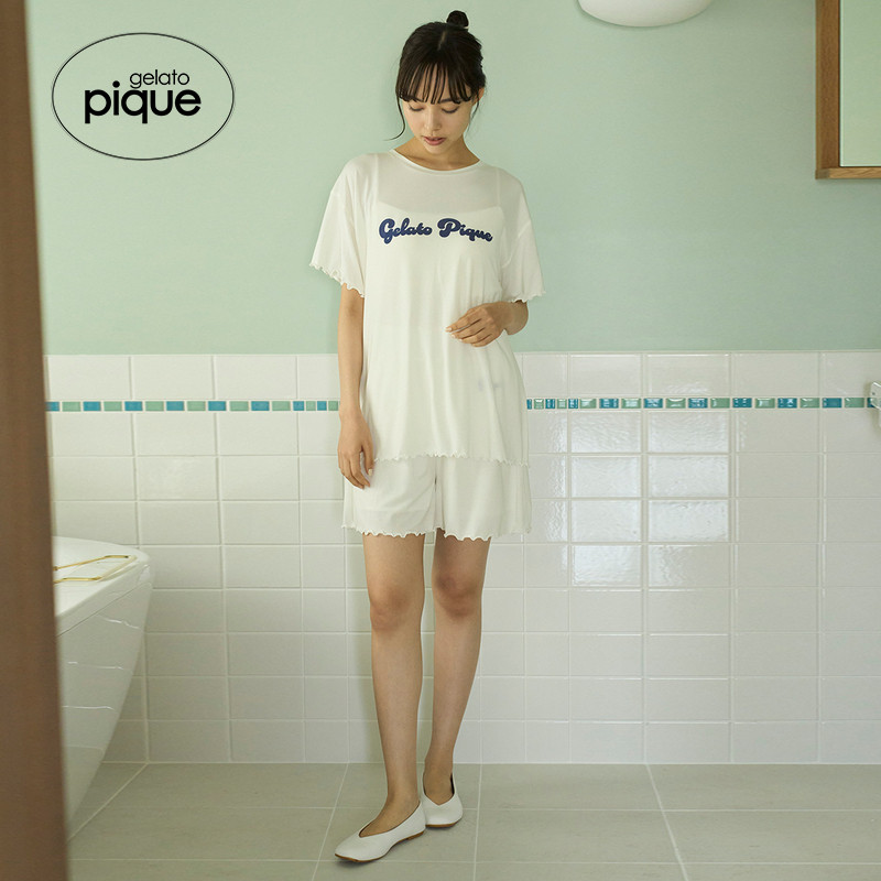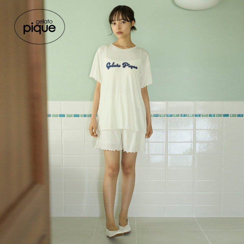 T恤PWCT254320 女睡衣字母木耳边彩色短袖 gelato pique25秋冬新品