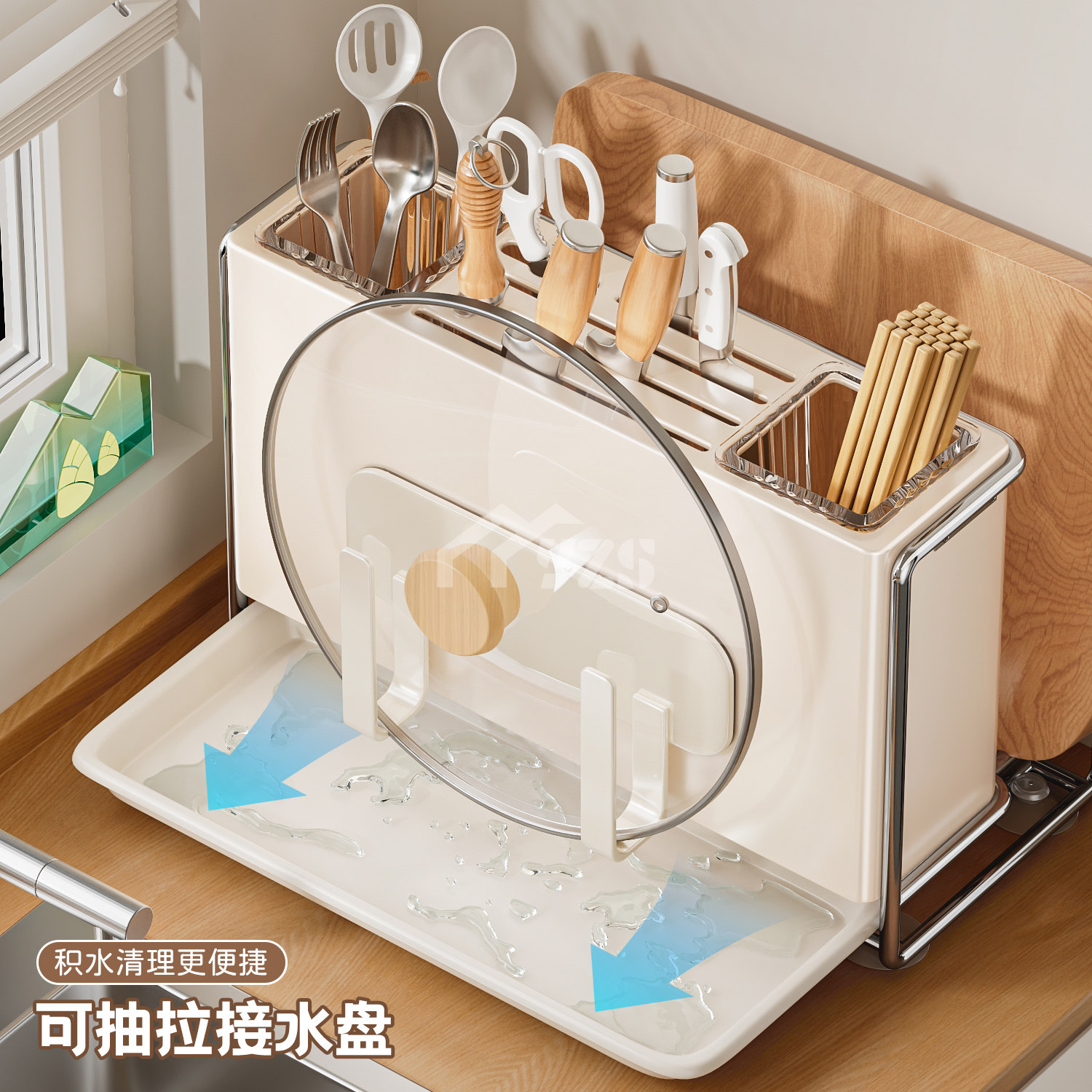 新款 刀架置物架多功能菜刀筷子砧板一体收纳架子 厨房高颜值台面款