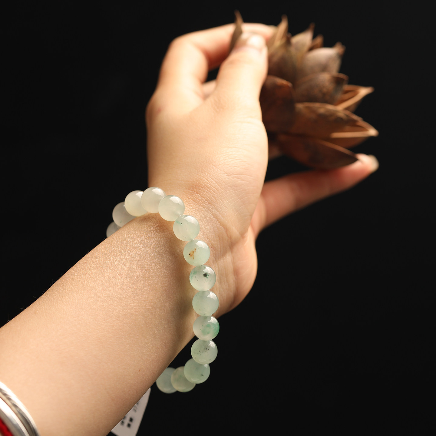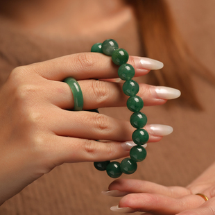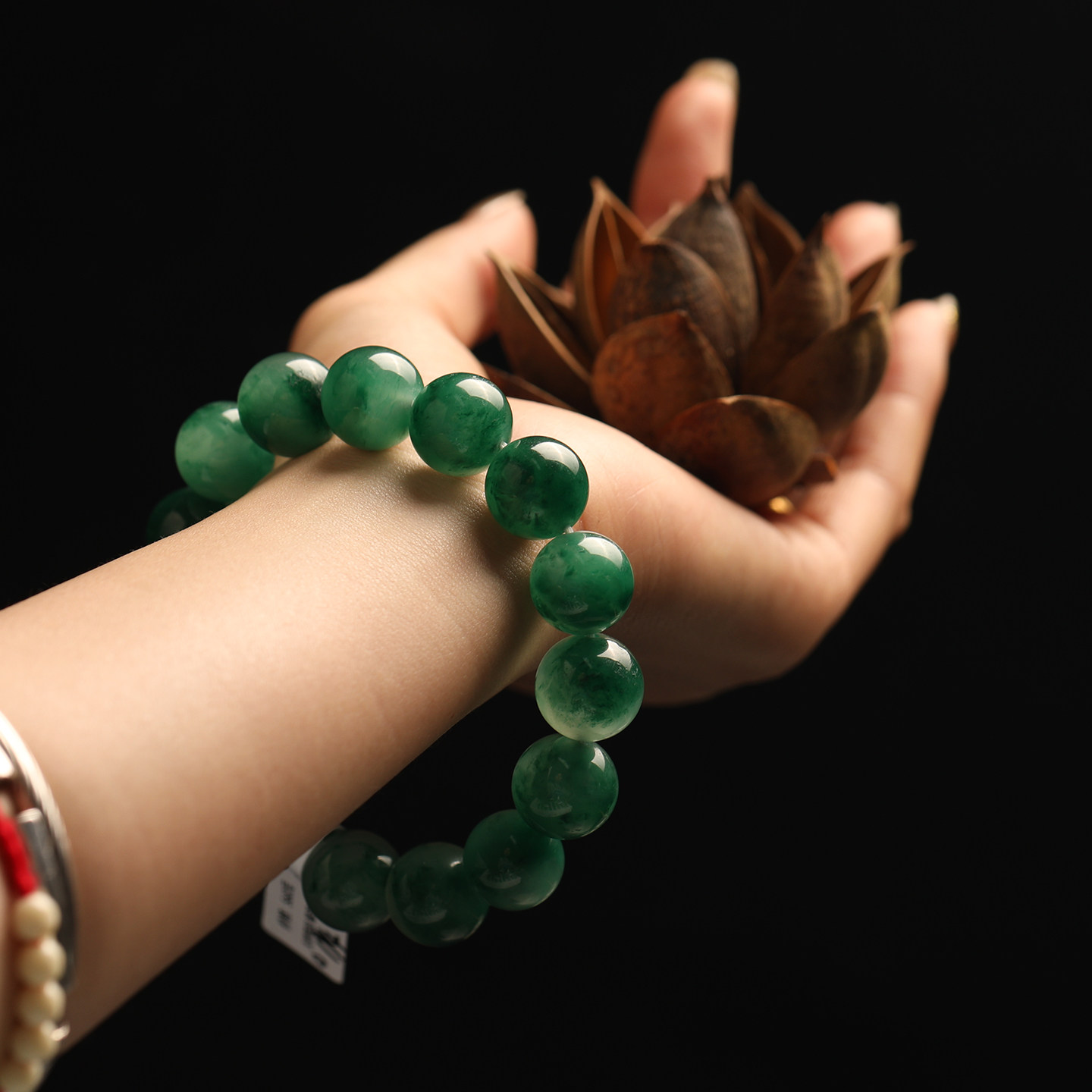 陈万福珠宝天然非洲翠A货果绿冰飘花糯种满色圆珠手串经典 百搭款