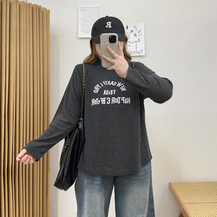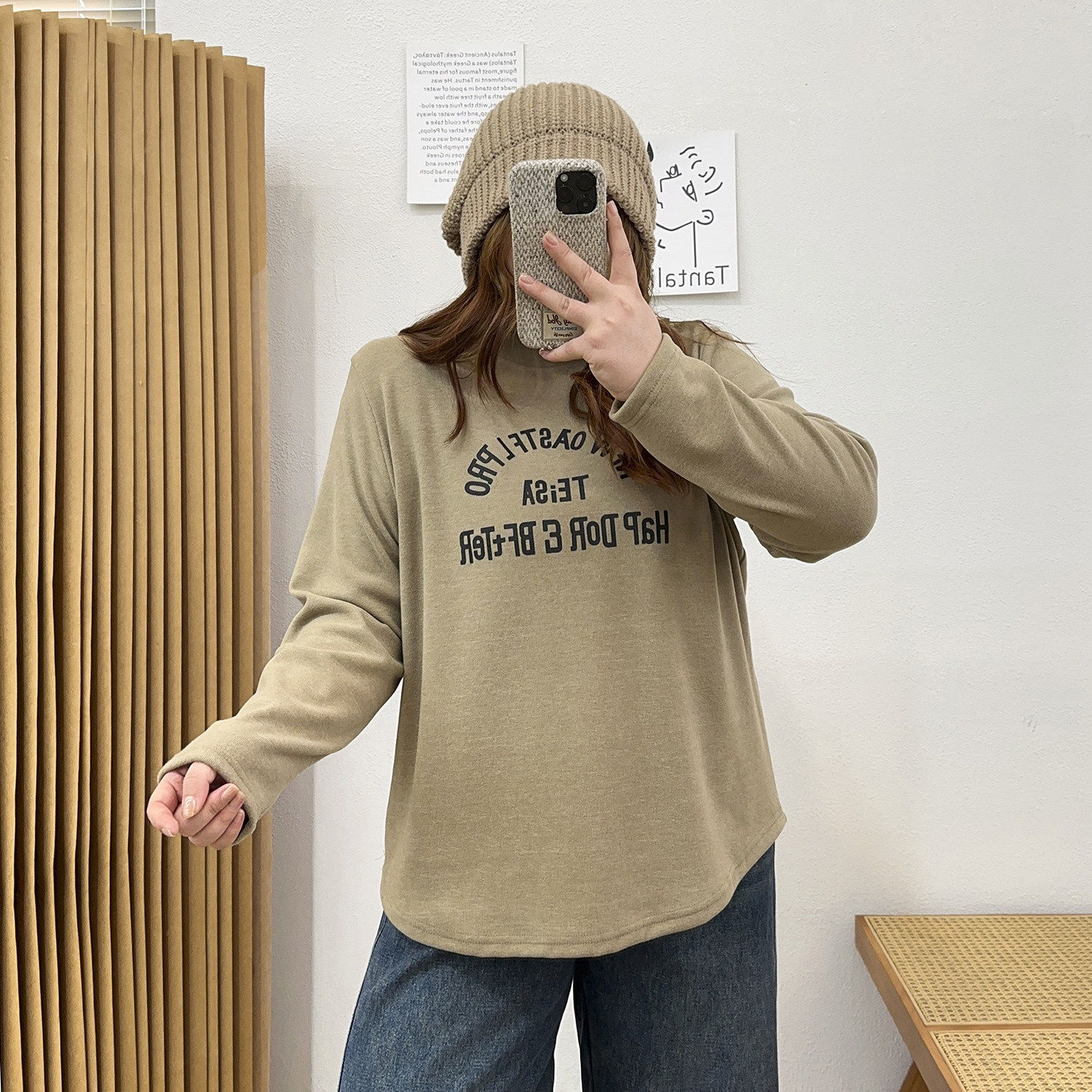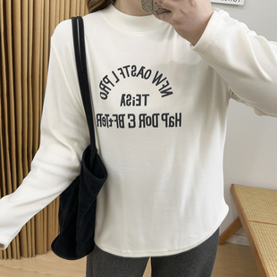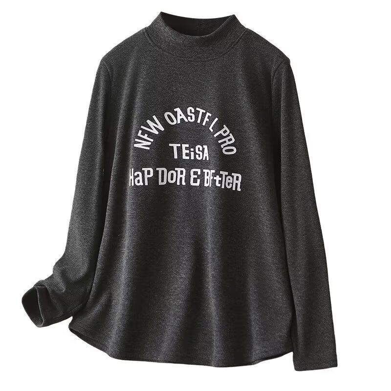 胖MM宽松显瘦打底衫 T恤女秋冬季 半高领字母磨毛德绒长袖 宛宛大码