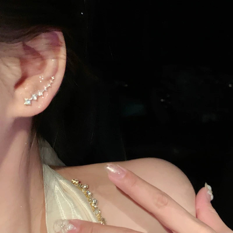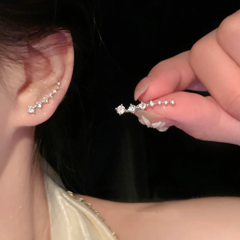 999纯银耳钉养耳洞爱心耳骨钉小众锆石耳蜗钉钻石耳环足银耳饰女