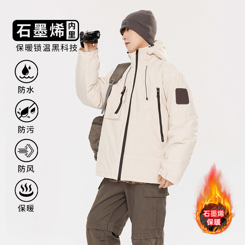 重头来过登山夹克石墨烯冲锋衣男秋冬款 加棉加厚保暖上衣棉服