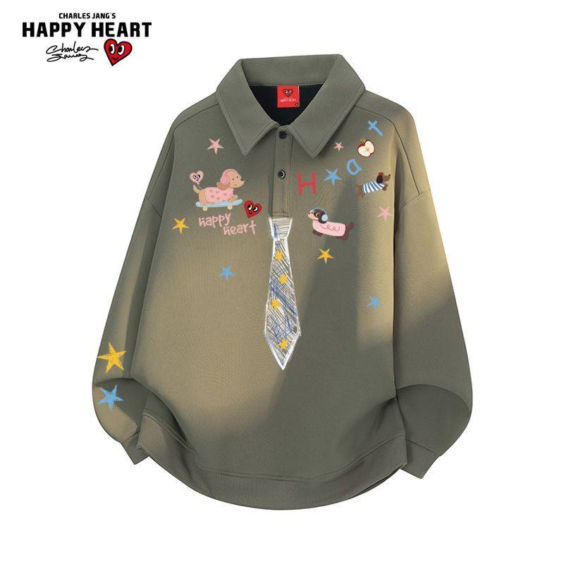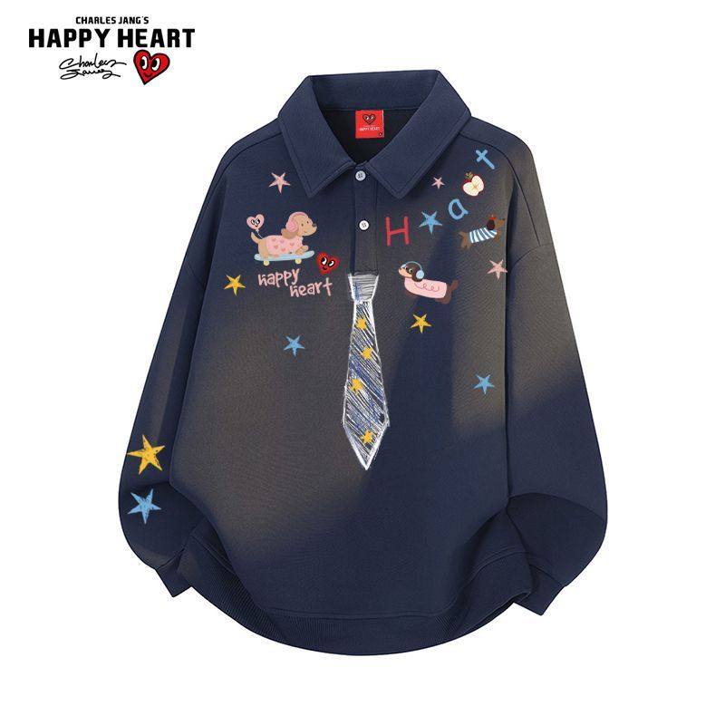 印花上衣 宽松休闲百搭长袖 查尔斯桃心涂鸦领带卫衣男女秋冬季 新款