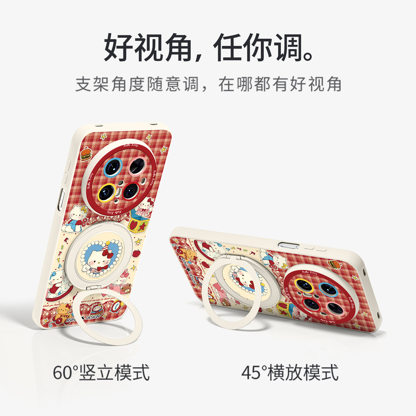 积木凯蒂适用华为Mate80Promax手机壳磁吸带支架Pura80pro新款 支点保护套p70液态硅胶Bo5高级感mt70 mt60por