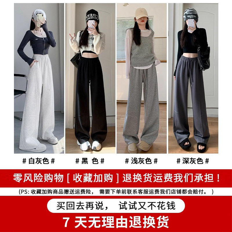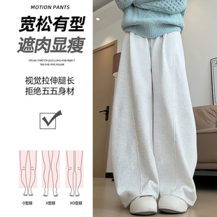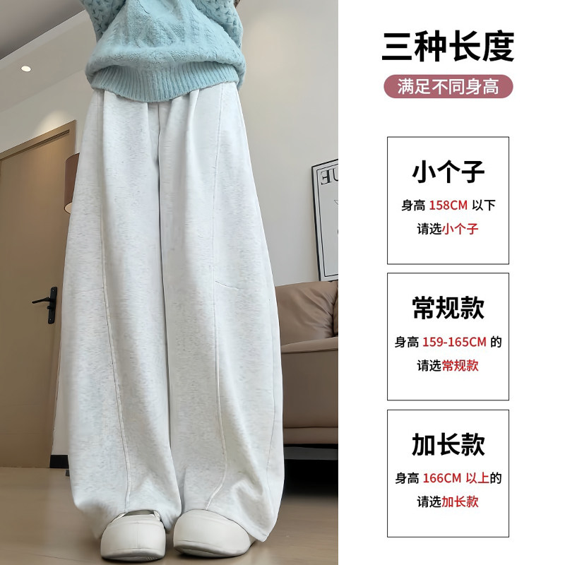 香蕉卫裤 高腰直筒休闲运动裤 女秋冬加绒2025新款 白灰色镰刀阔腿裤