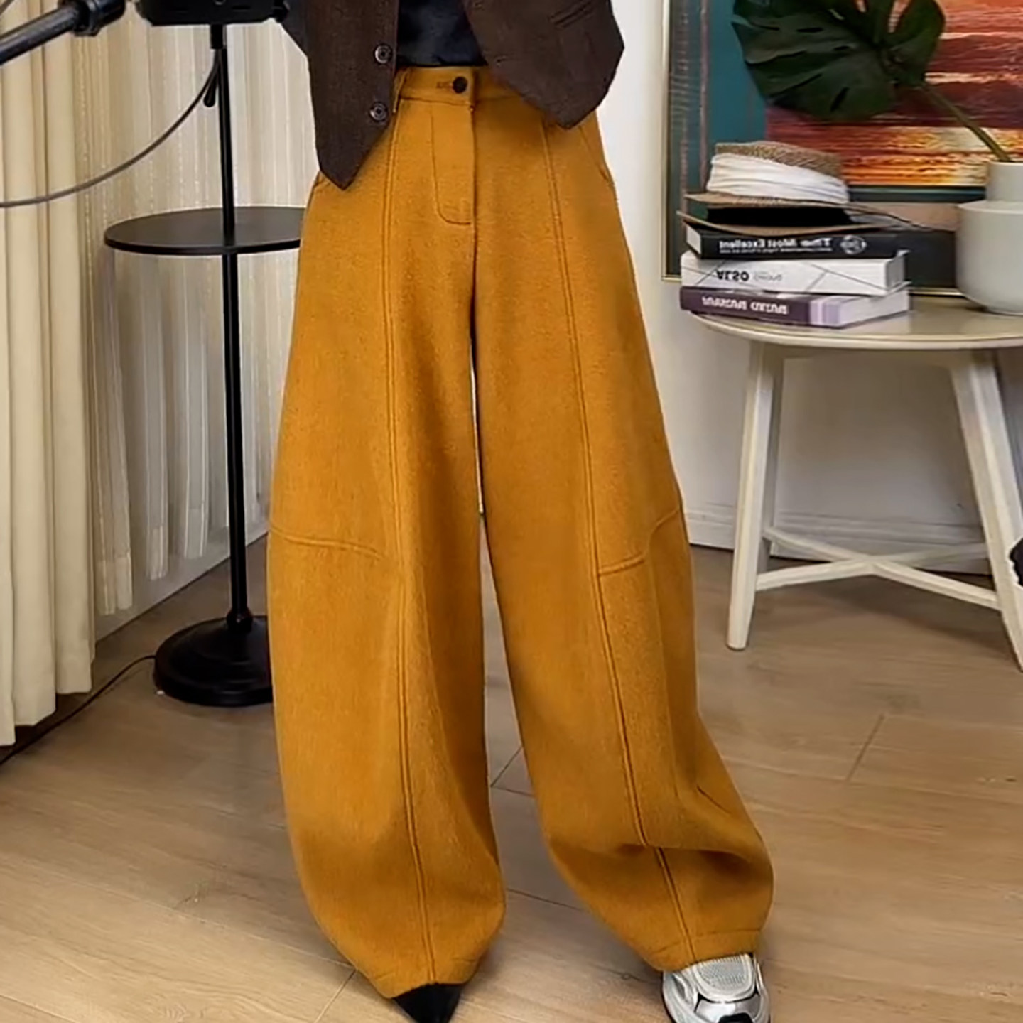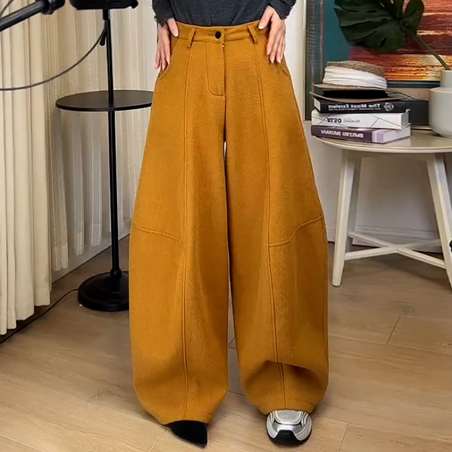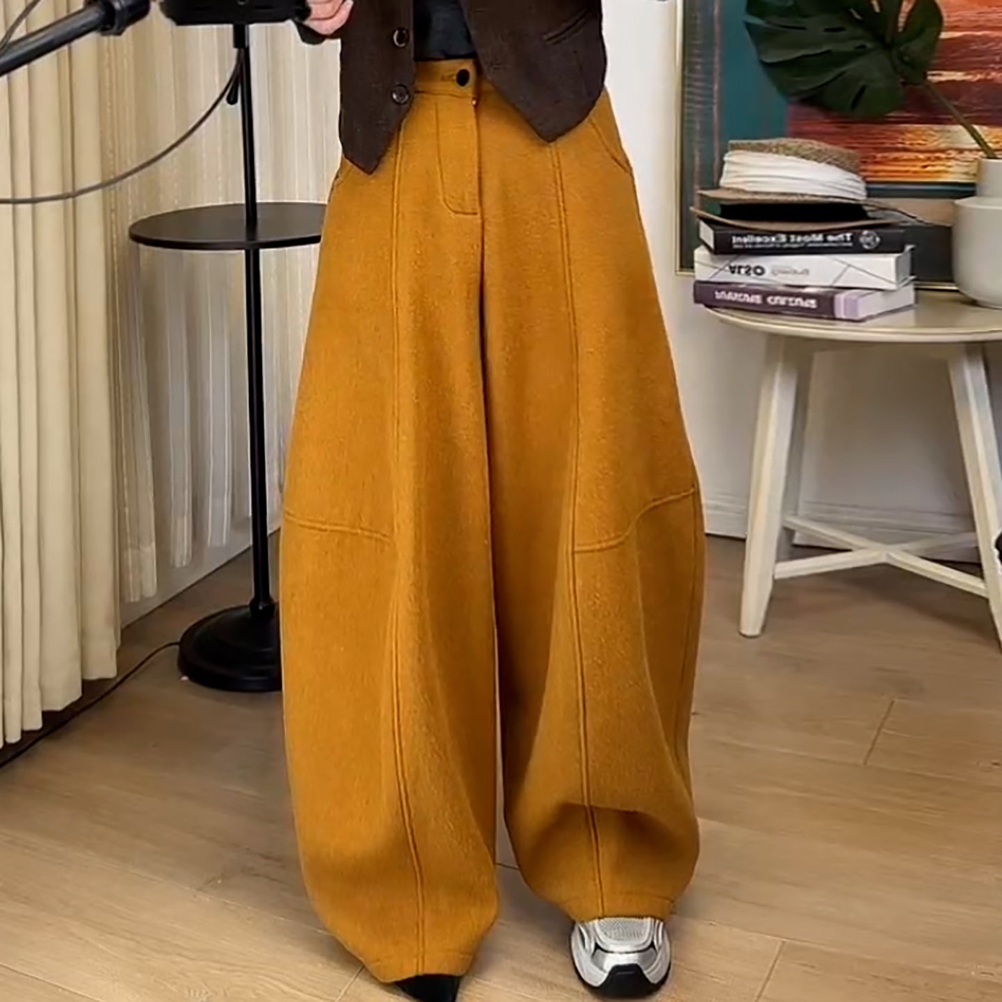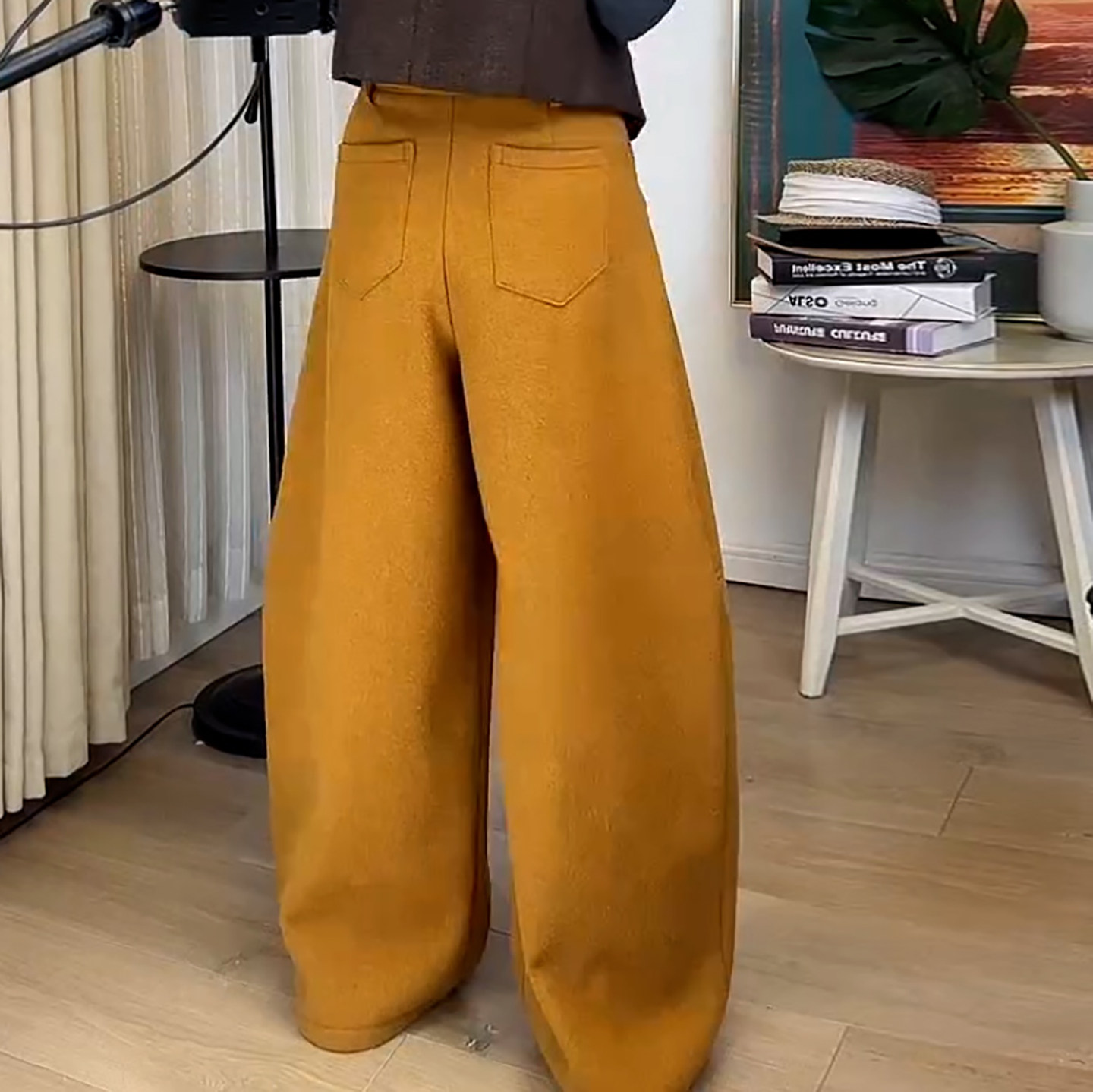 胖mm冬季 保暖松紧腰时髦裤 加绒阔腿裤 女装 子 木子理想大码 锦鲤裤