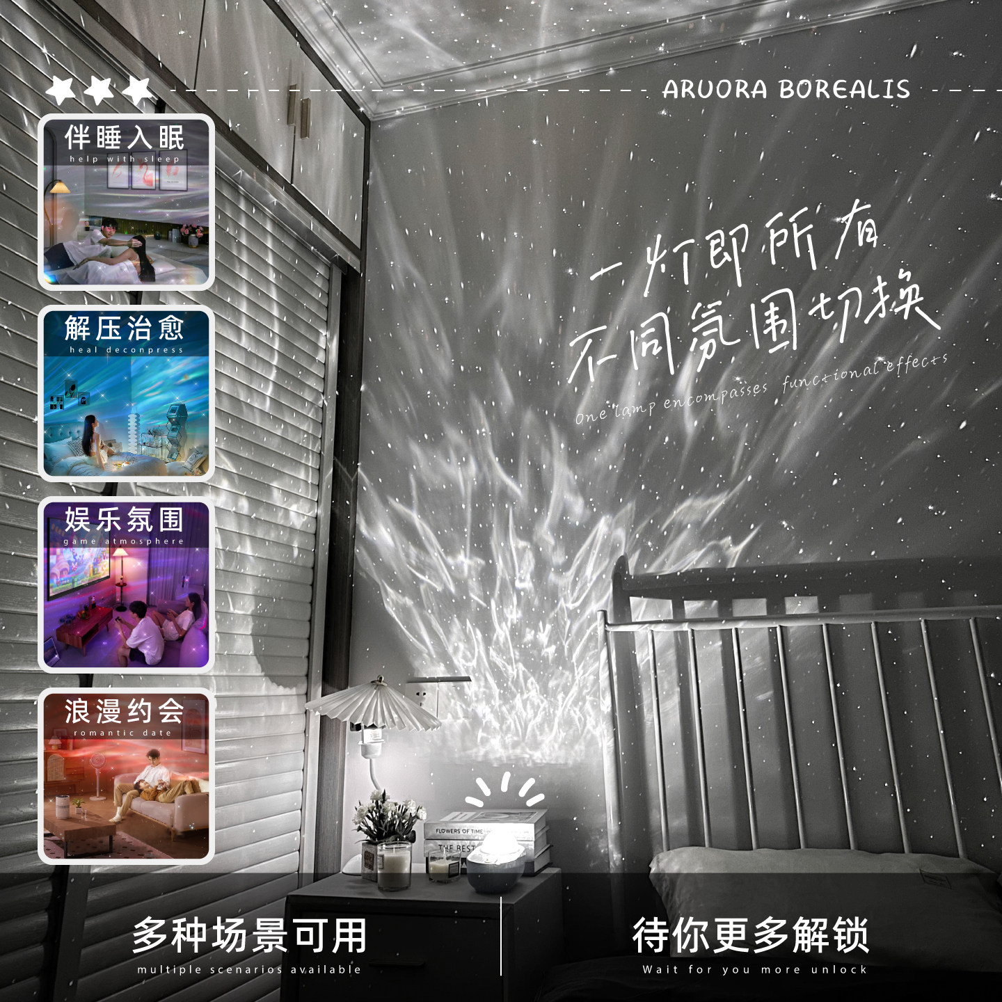 淳言旋转水波纹小夜灯创意床头氛围灯新年礼物情调卧室星空投影灯