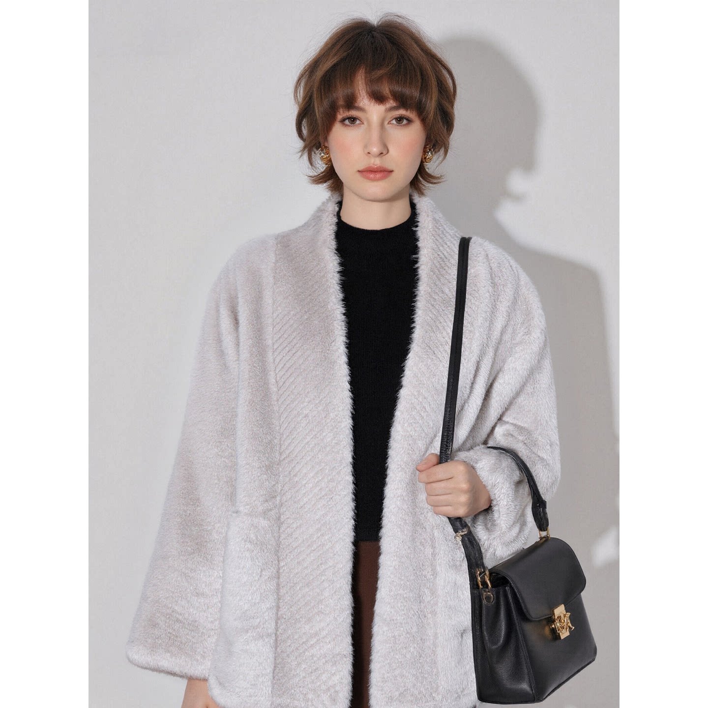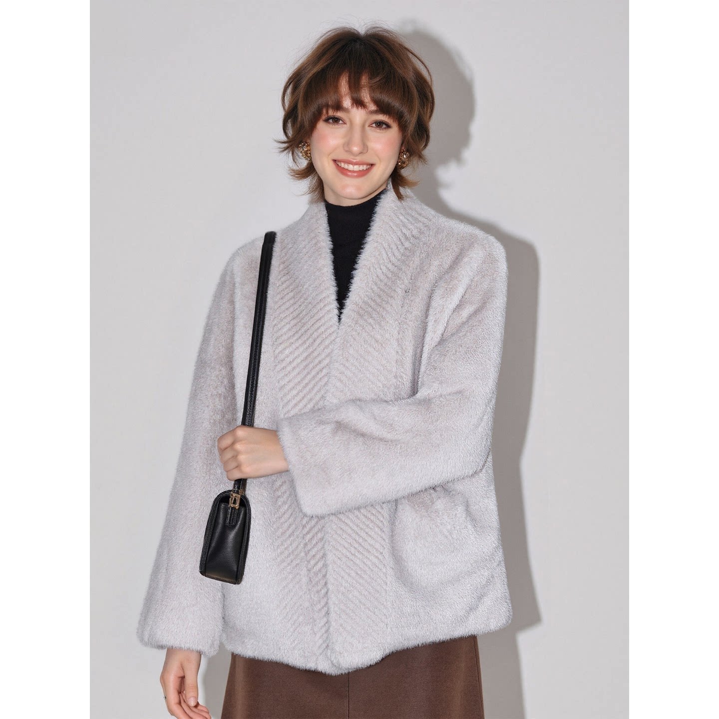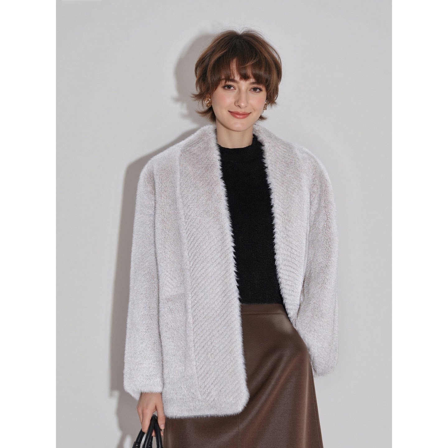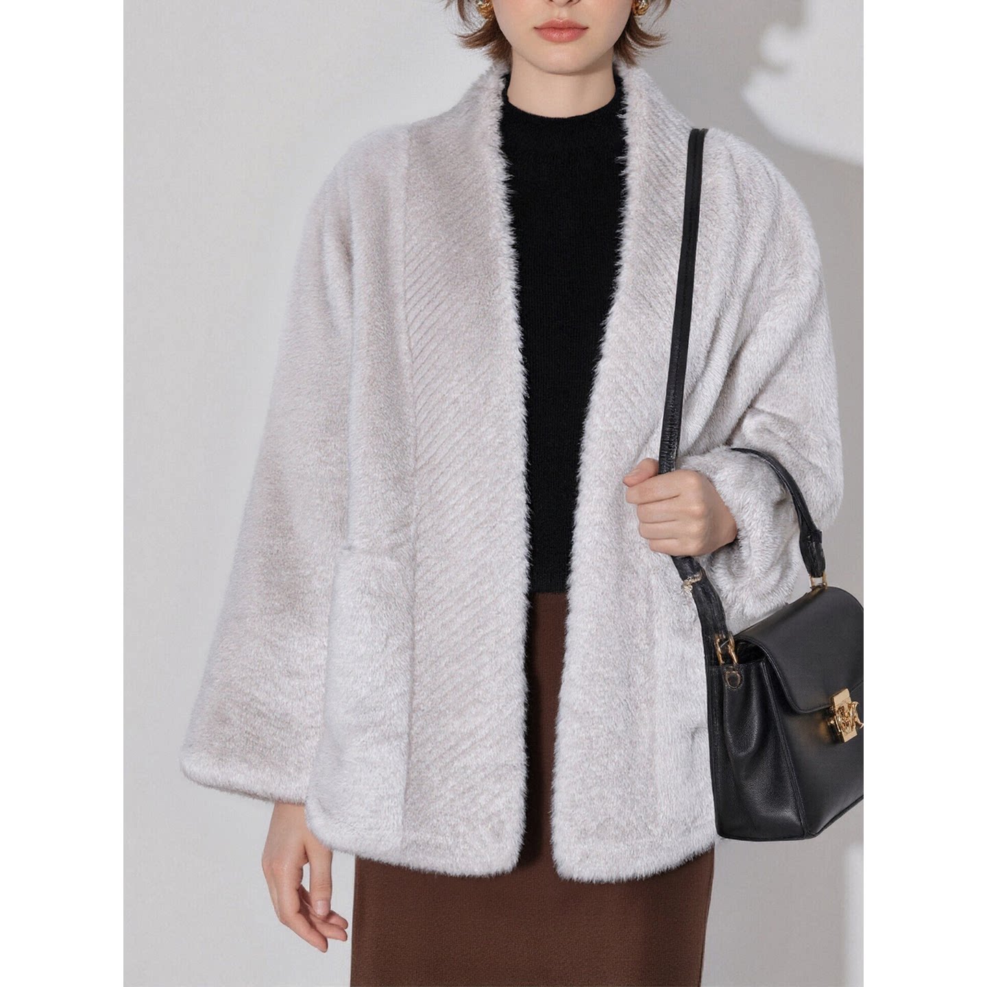 加厚慵懒毛毛外套 百家好轻奢气质灰色环保皮草女春季 Basic House