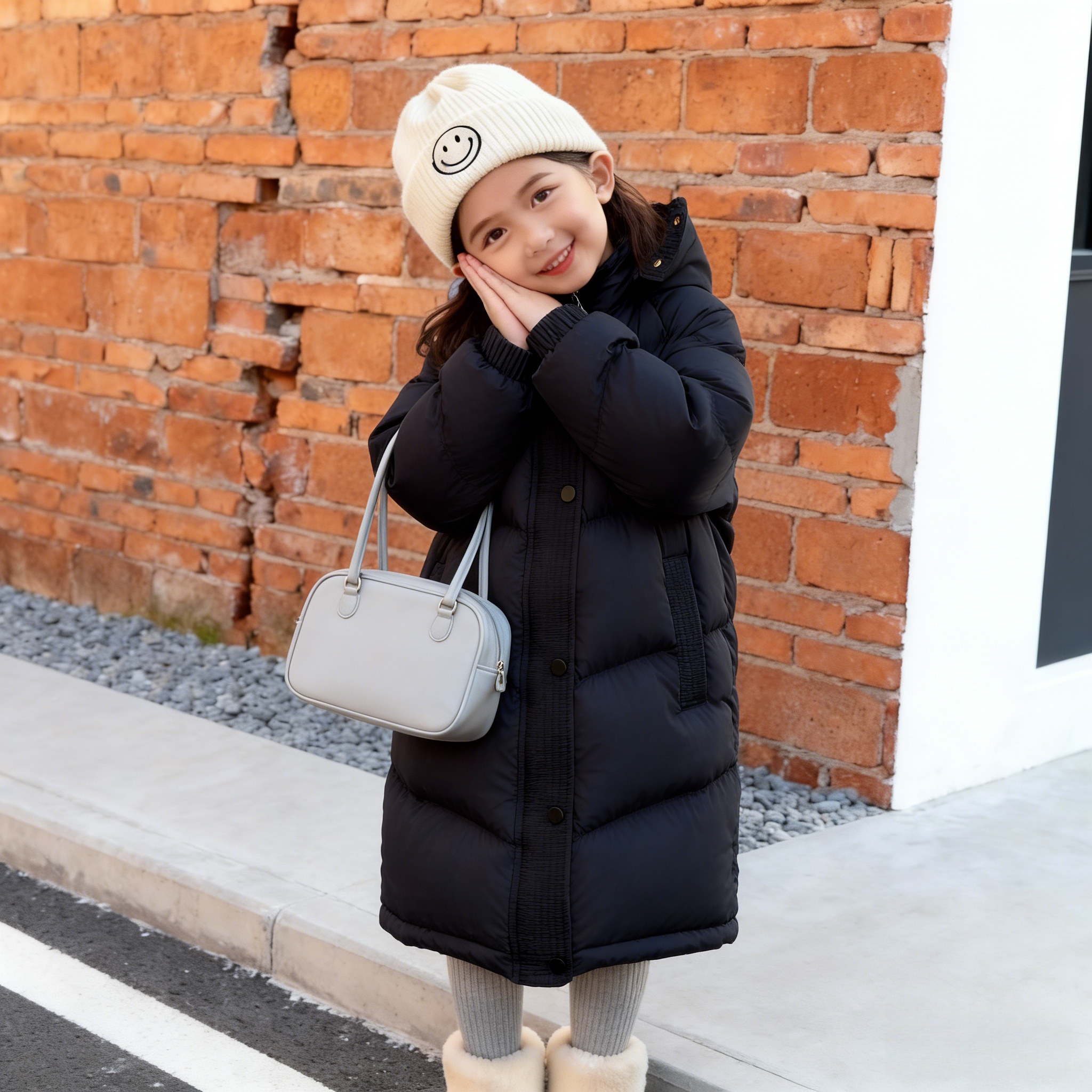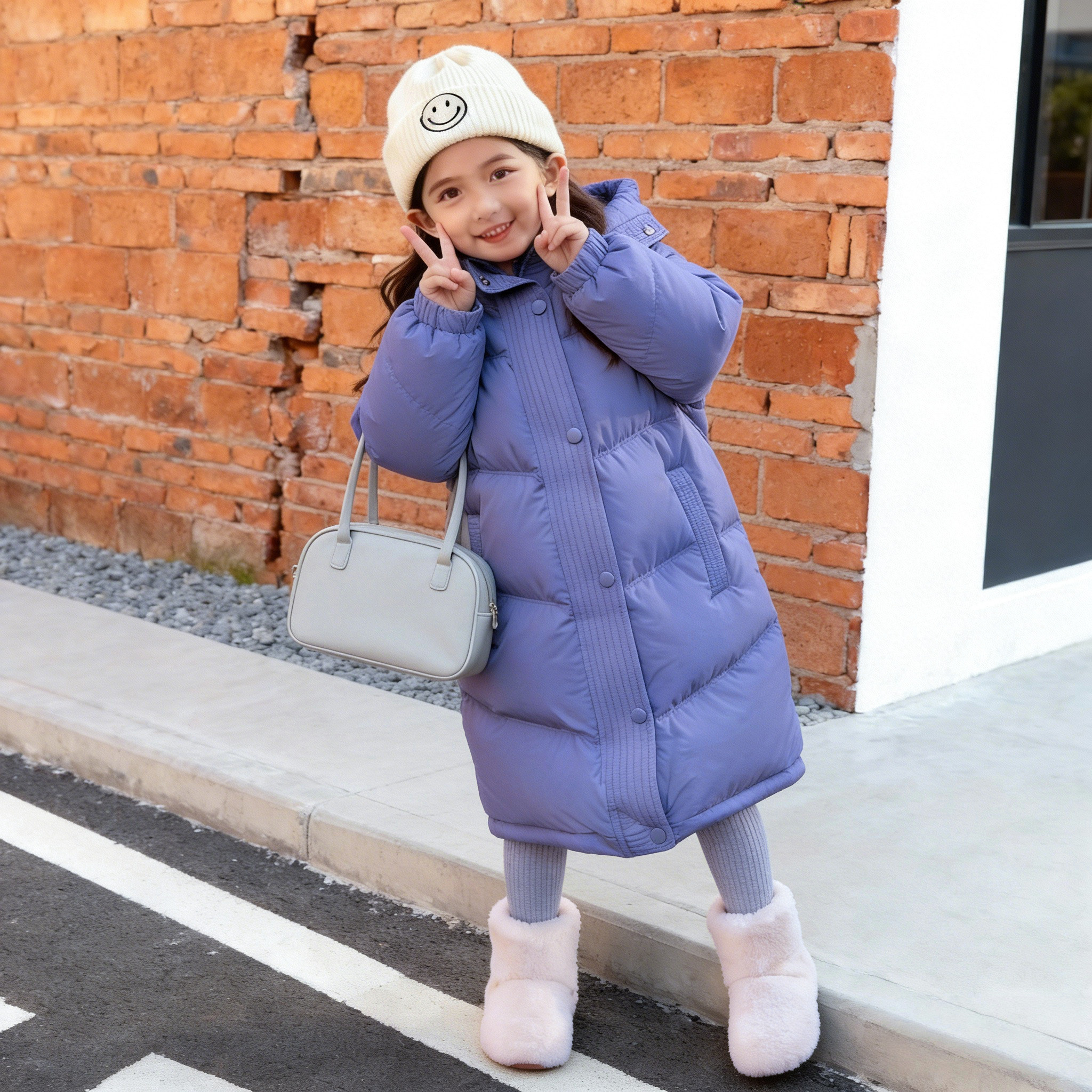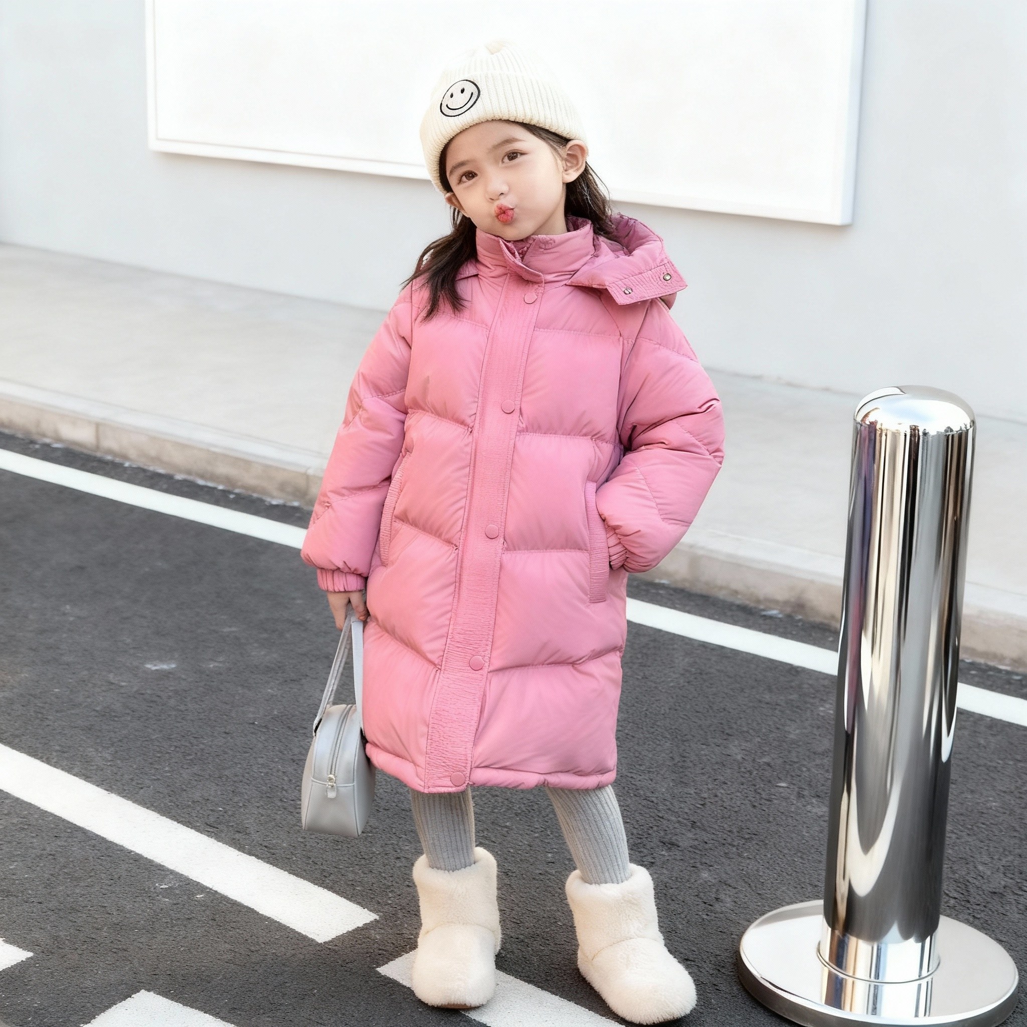 儿童羽绒服女童中长款 加厚90白鸭绒男童中小童三防保暖女宝外套冬