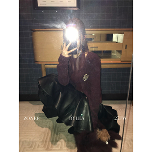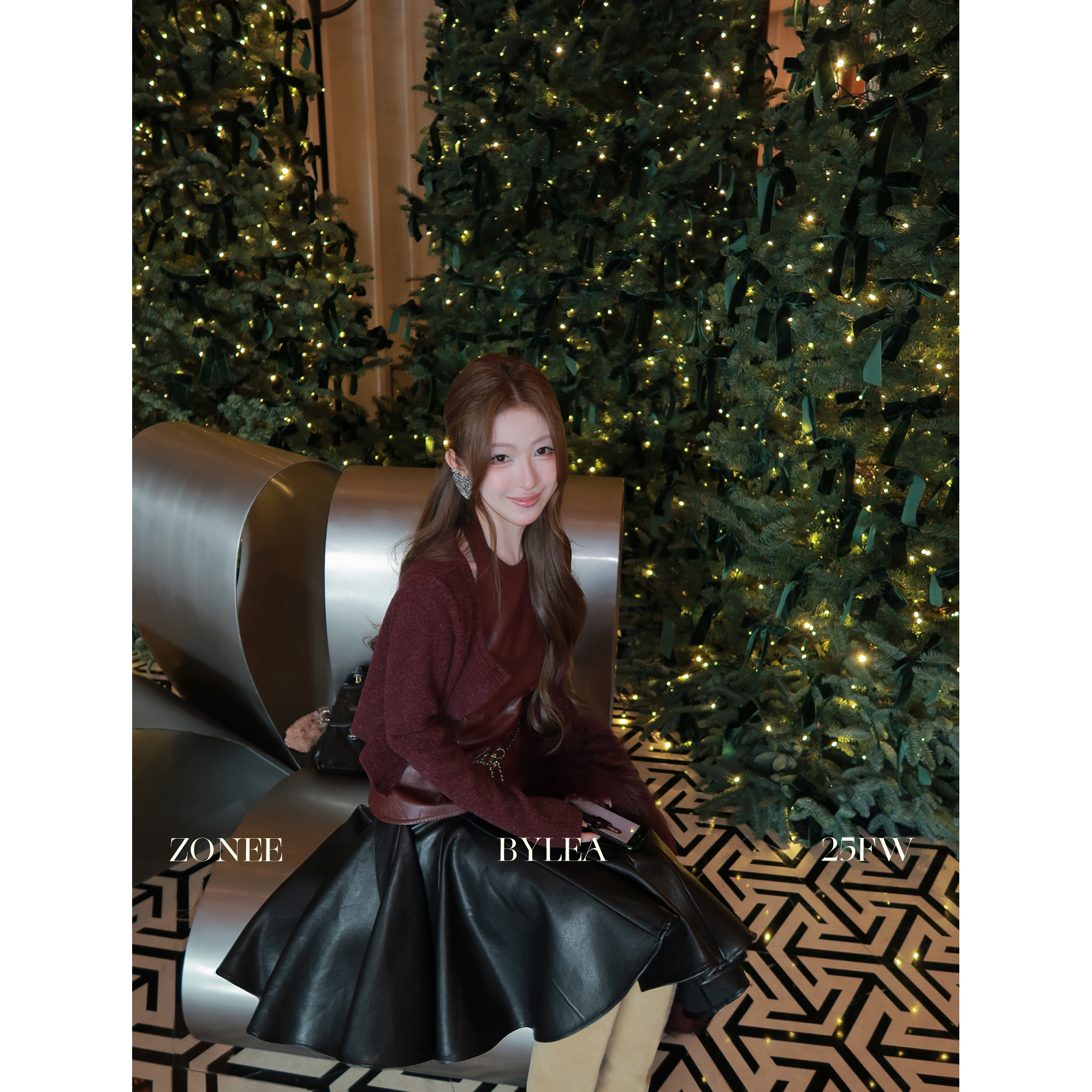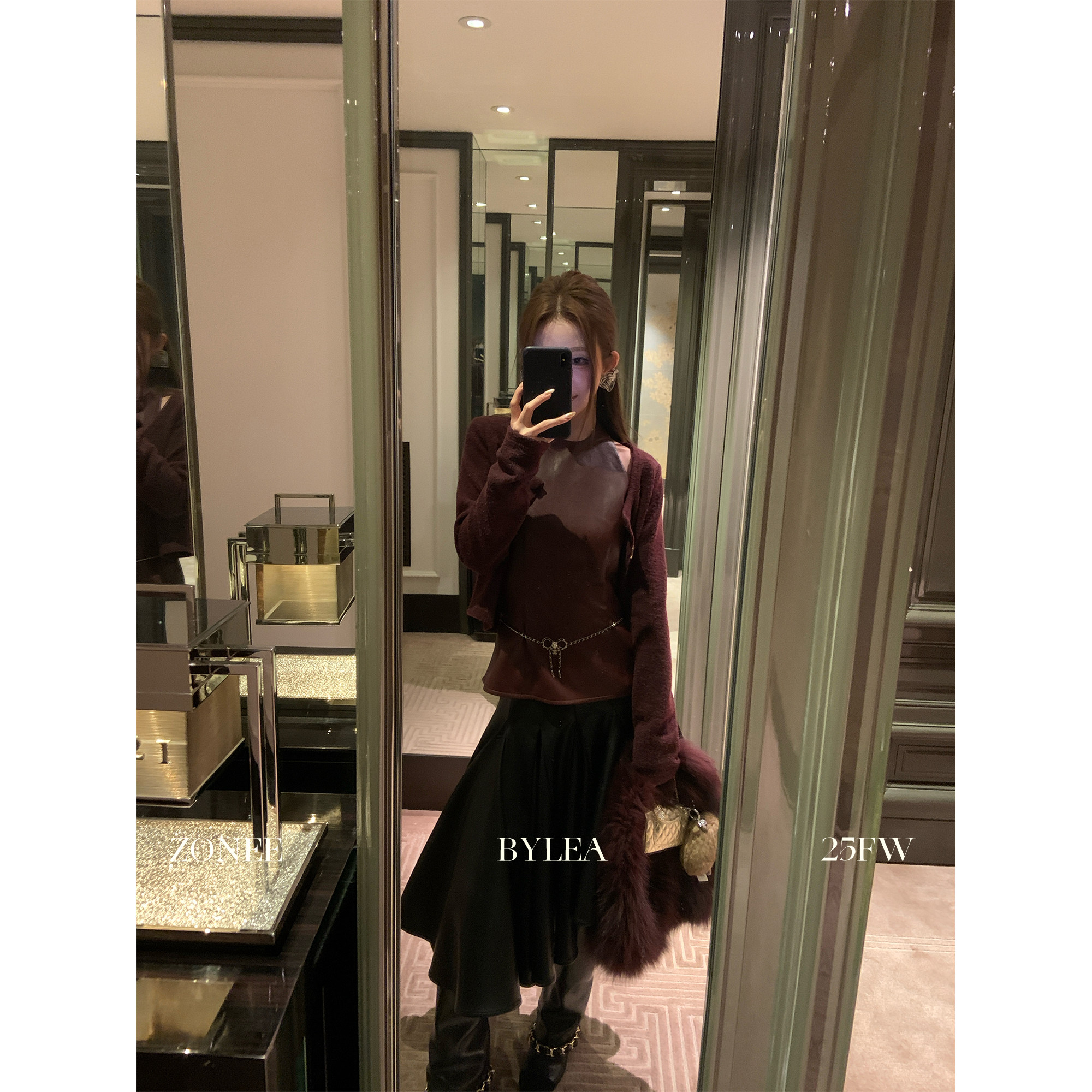 复古氛围保暖酒红色针织开衫 ZONEE 法式 红色浆果 外套 LEA宋亦雯