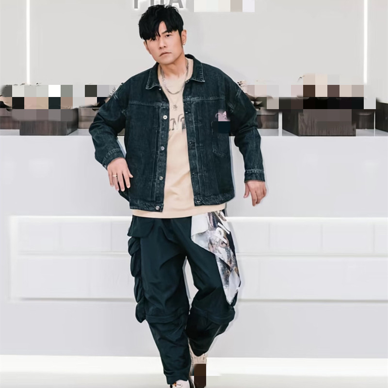 CulturE小众重工解构做旧垫肩连帽牛仔外套套装 男 金属点缀牛仔裤