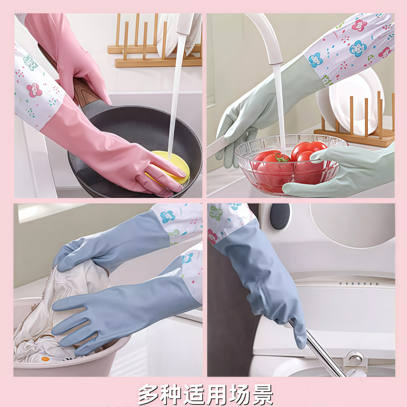 加绒手套家务洗碗女耐用加厚橡胶厨房刷碗洗衣服清洁防水耐磨手套