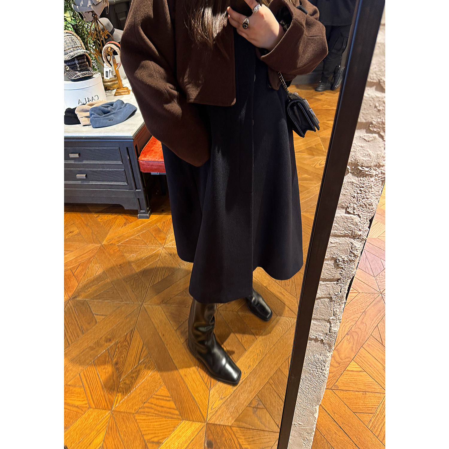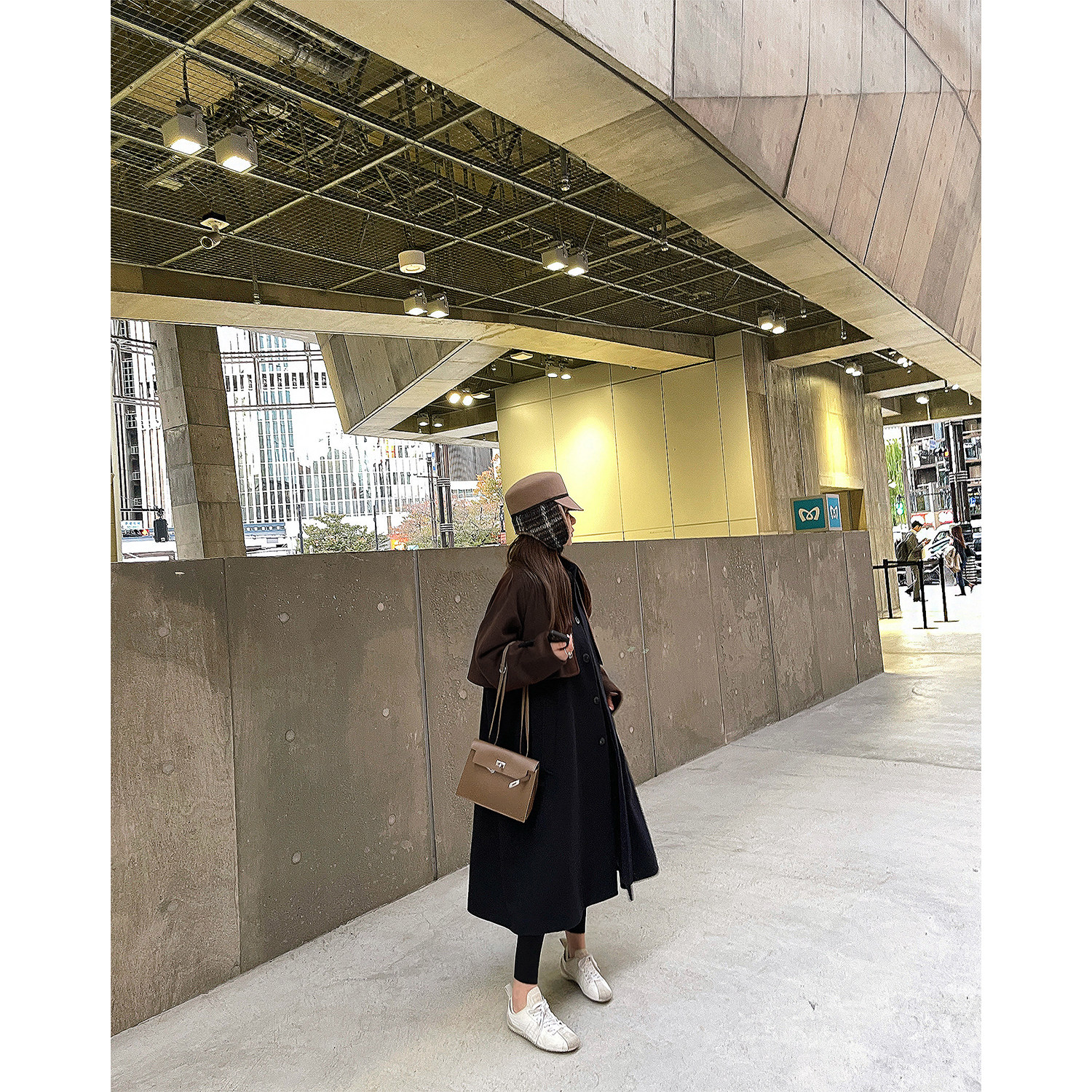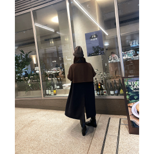 高级配色假两件套撞色羊毛大衣 匠心设计 LANGBOOM 小野仓原