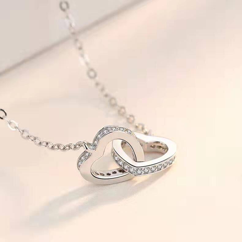 新款 镂空爱心吊坠心心相印项链女小清新环环相扣项链送女友礼物