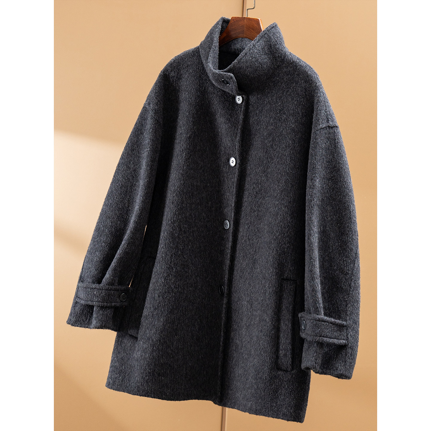 H春上7号 法柜羊毛羊驼毛双面呢收腰一手长大衣D15J9 气质大女主