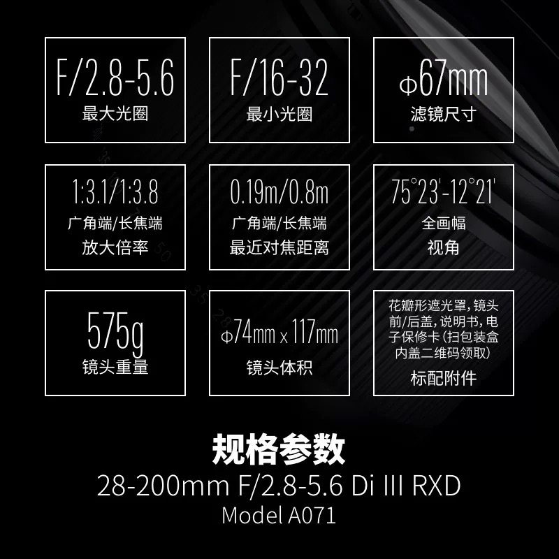 200mm 微单E卡口镜头全画幅FE 5.6 28200 2.8 腾龙28