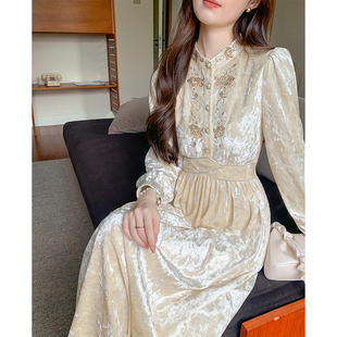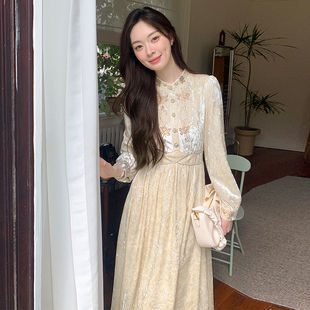 蝴蝶结胸针可开门襟简约裙子 新款 乐町假两件小香风连衣裙女装 冬季