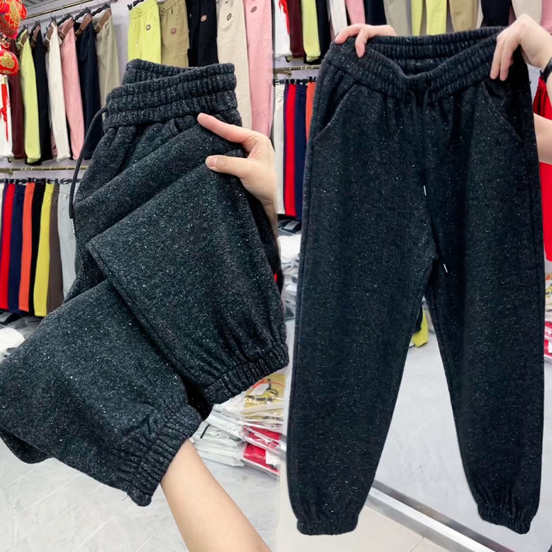 女冬季 高腰束脚卫裤 新款 宽松显瘦运动裤 九分哈伦裤 星空加绒休闲裤